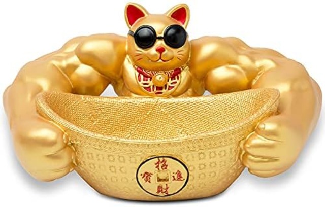 置物 招福 招き猫 開運 金運 祈願 筋肉 招き猫 鍵など小物収納 卓上置物 招財 面白い 誕生日プレゼント インテリア 雑貨 樹脂製 (ゴールド)