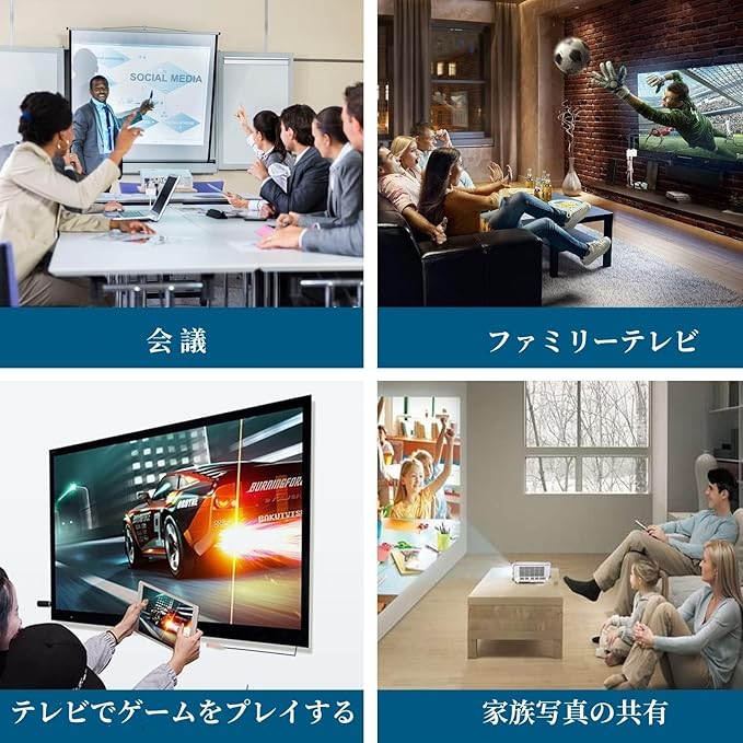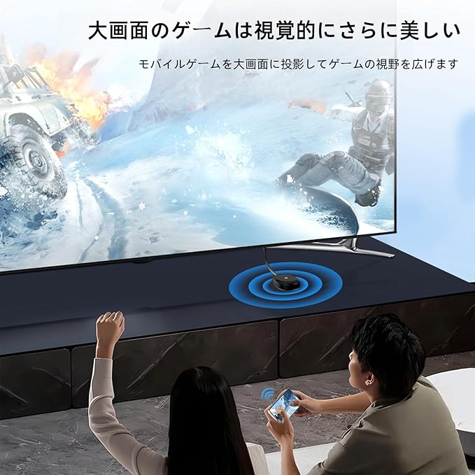 【コンパクト・持ち運び便利・様々な場所が活用】このワイヤレスHDMIは超低消費電力、低発熱で、サイズ一番小さくて手持ち易いデザインので、携帯便利です。 会議や講習、プレゼンなどでも簡単に活用出来ます。HD ビデオ/ゲーム/写真/オフィスファイルなどが高解像度で色鮮やかな映像でミラーリング可能で、家庭エンターテイメント/ビジネス/教育/トレーニングなどのシーンではおすすめです。携帯電話/タブレットは、画面が小さく操作が制限されたゲームコントローラになっています。小さな画面は大きな画面になり、視野が広くなるため、ゲーム体験がより面白くなります。