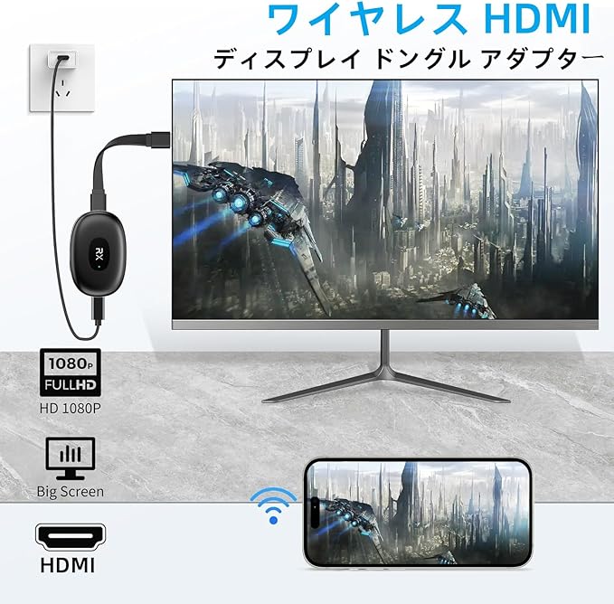 【最新進化版・使いやすい・】進化版のHDMIミラーキャスト、W-I-F-Iだけで連接できます。特に専用APPやドライバ不要で、何も設置する必要がなくて連接してから直接使用できます。Miracast、DLNA、Airplay モードを使用したミラーリング。最新のミラーキャストは安定なワイヤレス伝送プロトコルを採用され、スマホ・タブレット・ノートパソコンの画像を、テレビ│モニター│プロジェクターなど画面大きいデバイス上に映すことができます。日本語取説書付き.ご注意! !本製品にはHDMIケーブルは付属しておりません