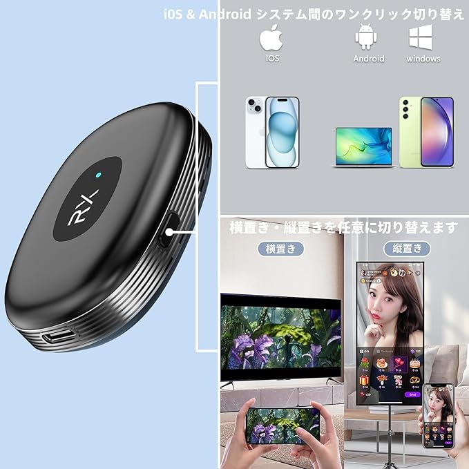 HDMIミラーキャスト XinYaa[2024新版正規品] クロームキャスト 4K HD画質/5G高速伝送/横・縦置き切り替え 携帯画面をテレビに映す映画/テレビ/ゲーム/会議 タイムラグ音ズレなし接続 有線の煩わしさから解放 i0S&Android&Windows&MAC OS対応 日本語取説書付