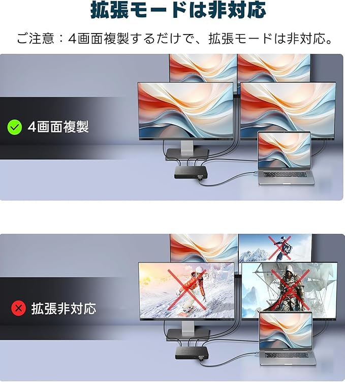 【簡単接続・多用途活用】このHDMIスプリッター 1入力4出力をHDMIケーブルで入力&出力デバイスと接続するだけでご利用いただけます(HDMIケーブルは別途でご用意ください。HDMI2.0規格以上推奨)。専用のAPPやドライバーは不要で、ケーブルを接続するだけで設定が完了します。ホームシアター、企業会議、在宅勤務、テレワーク、教育現場、映像編集、展示会、プレゼンテーション、テレビの展示販売、ゲーミングセットアップなど、さまざまなシーンでAV体験を4画面に簡単に共有できます。