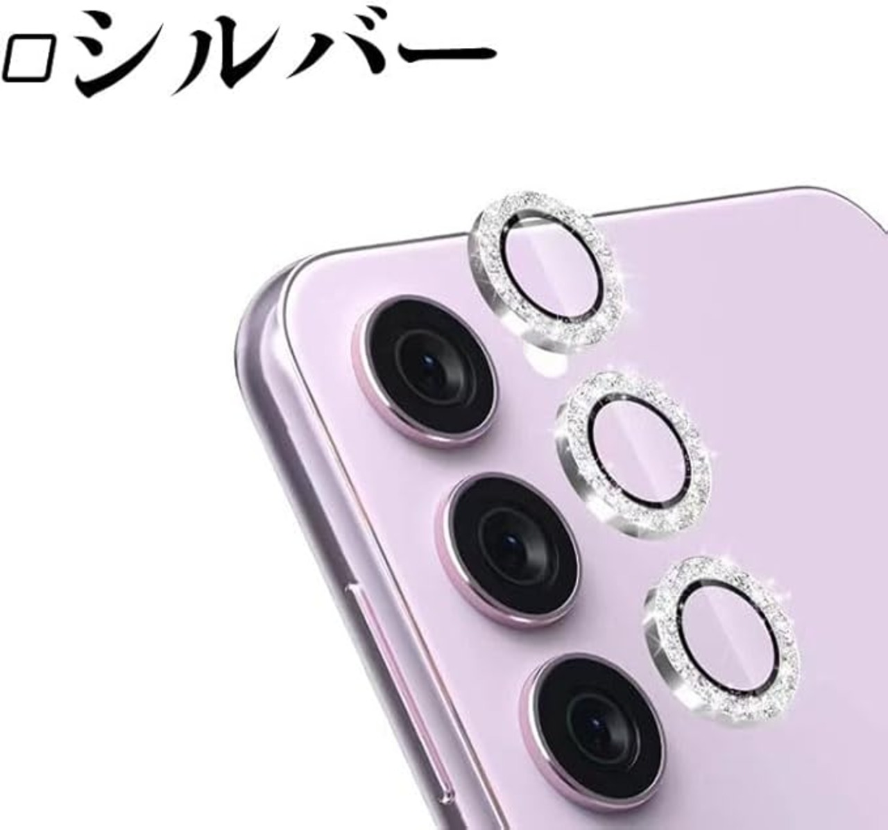 カメラ保護カバー・Galaxy A55 5G用 カメラカバー ガラスフィルム カメラ保護 レンズカバー キラキラ きらきら かわいい おしゃれ サムスン Samsung ギャラクシー A55 5G アンドロイド 強化ガラス アルミ レンズ保護 保護フィルム (シルバー)