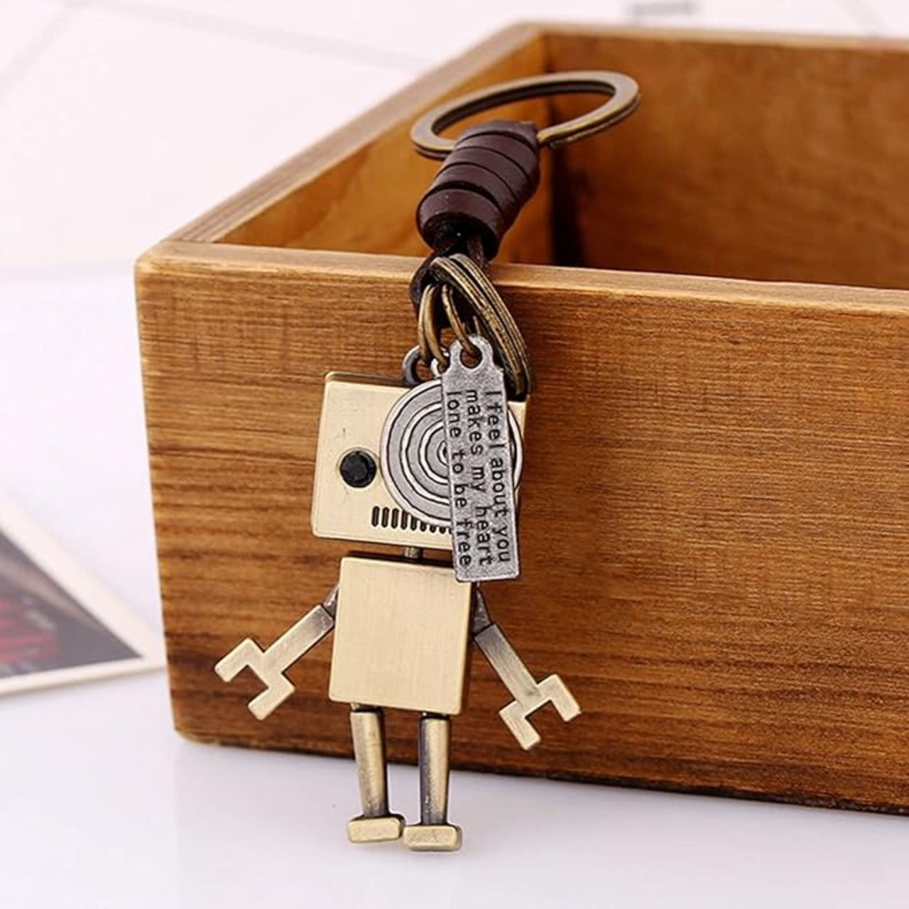 耐久性のある素材: この小さなロボットペンダントは高品質のブロンズで作られており、簡単に損傷したり色褪せたりすることがなく、キーホルダーが今後何年も長持ちします。