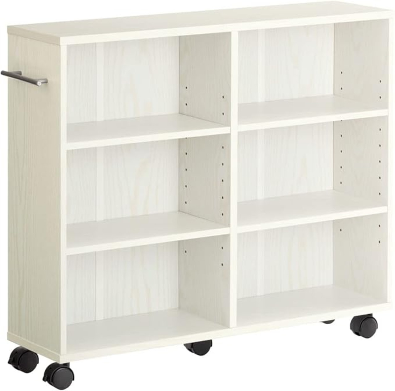 材質:プリント紙化粧パーティクルボード / 可動棚:4枚 / 耐荷重 各棚板:約8kg 天板:約15kg 全体:約30kg / キャスター付き / 背面化粧:有り / カラー:ホワイト、オーク、ウォールナット