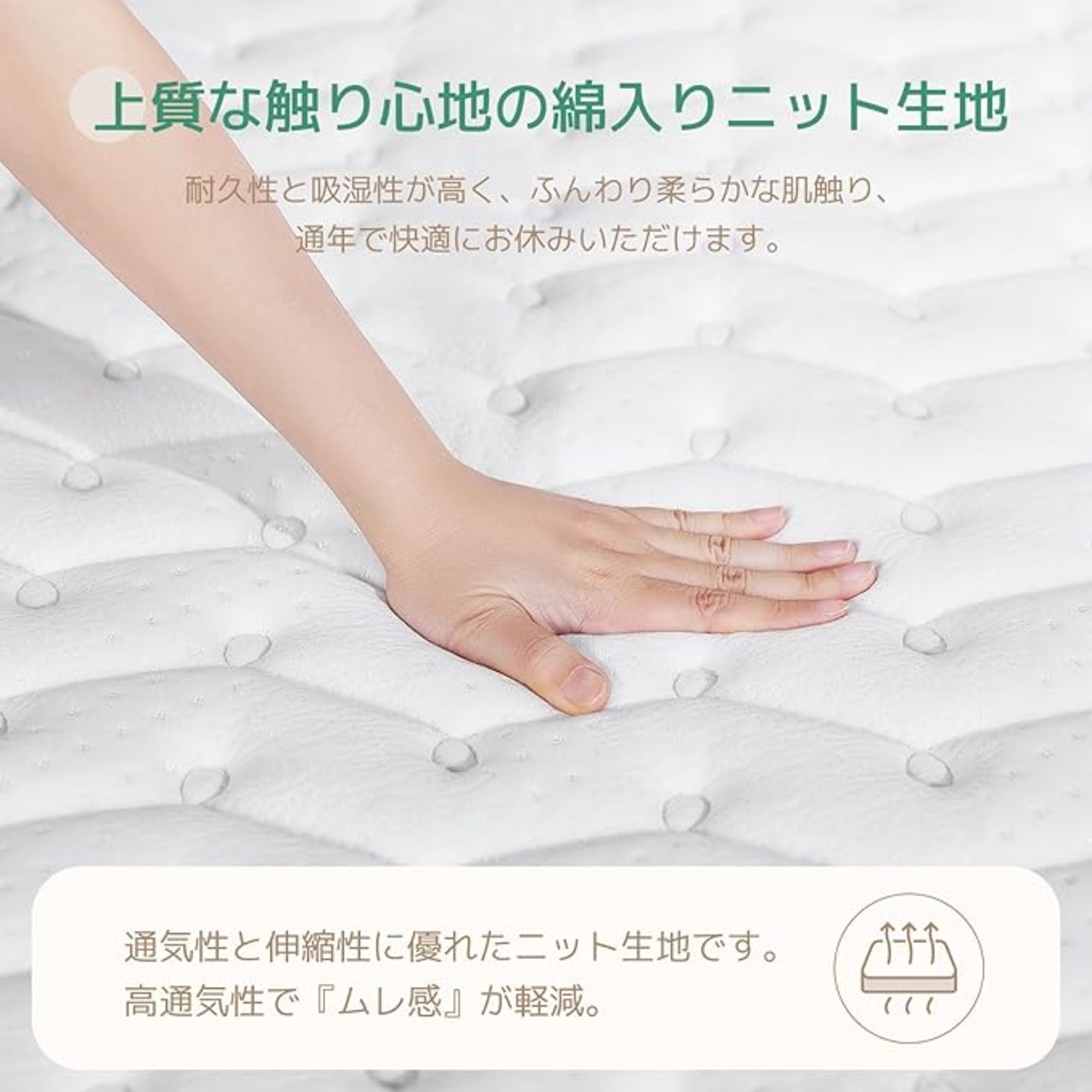 【丁度いい硬さ】2.1mm線経、マンガン含有量が高い硬鋼線を採用したやや硬めのマットレス クインー。体重50~80Kgの方とやや硬めのマットレス のほうが好きな方にオススメです。
