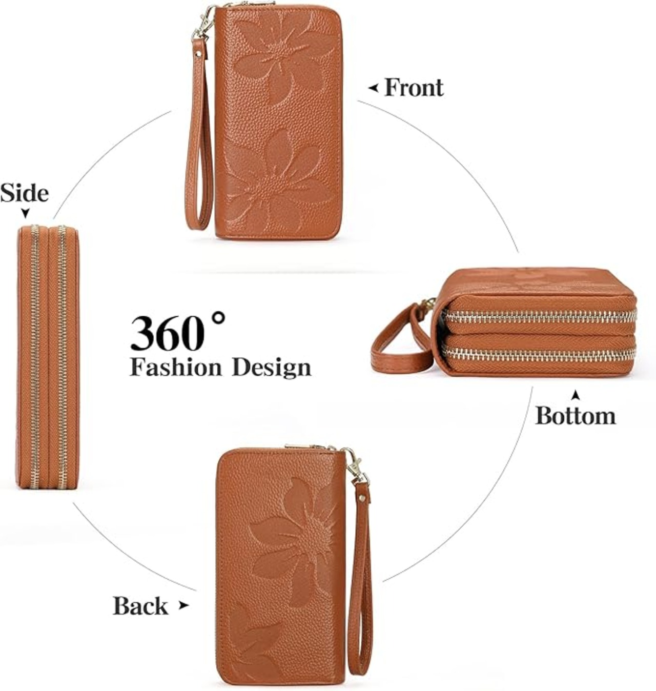 【ダブルファスナーウォレット】長財布レディースには2つの大きなファスナー仕切りで構成されています。広い財布には、16のカードスロット、4の隠しレシートスロット、4のお札入れ、1のファスナー小銭ポケットがあります。両側にはスマホ、パスポート、小切手帳、切手カード、その他の雑物を保管するために使用できます。