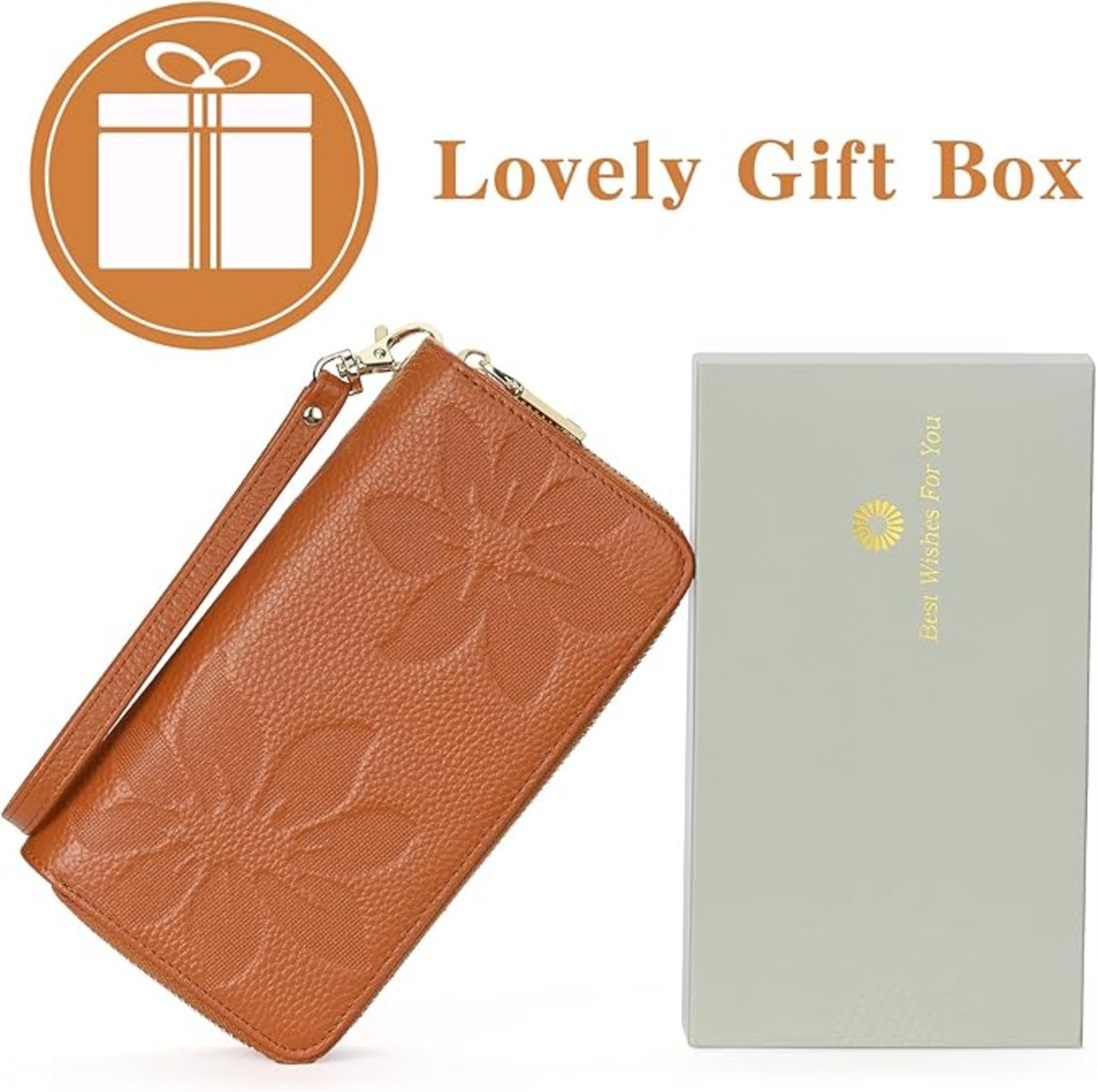 【こだわりの本革】この長財布は柔らかい本革を採用しており、皮質は柔らかく光沢があり、女性用財布の花の模様は優雅で贅沢です。