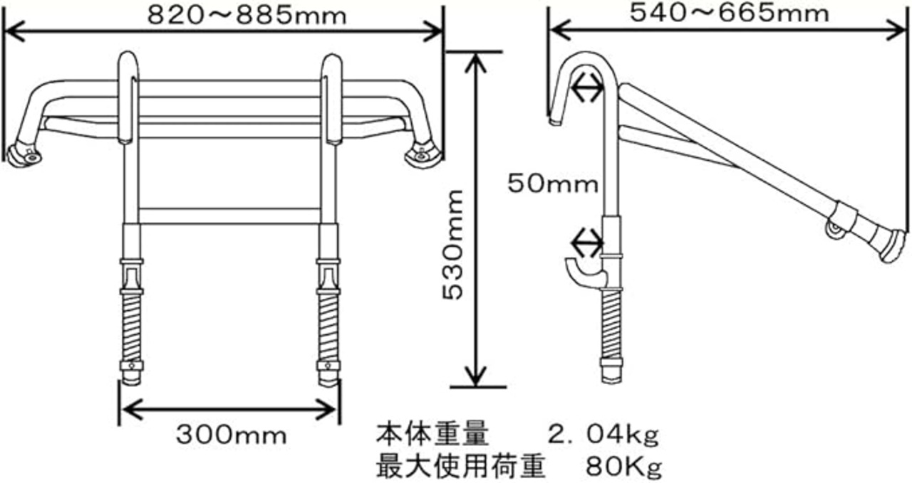 アルミ製で軽量。ワンタッチの取り付けでハシゴと一体化。