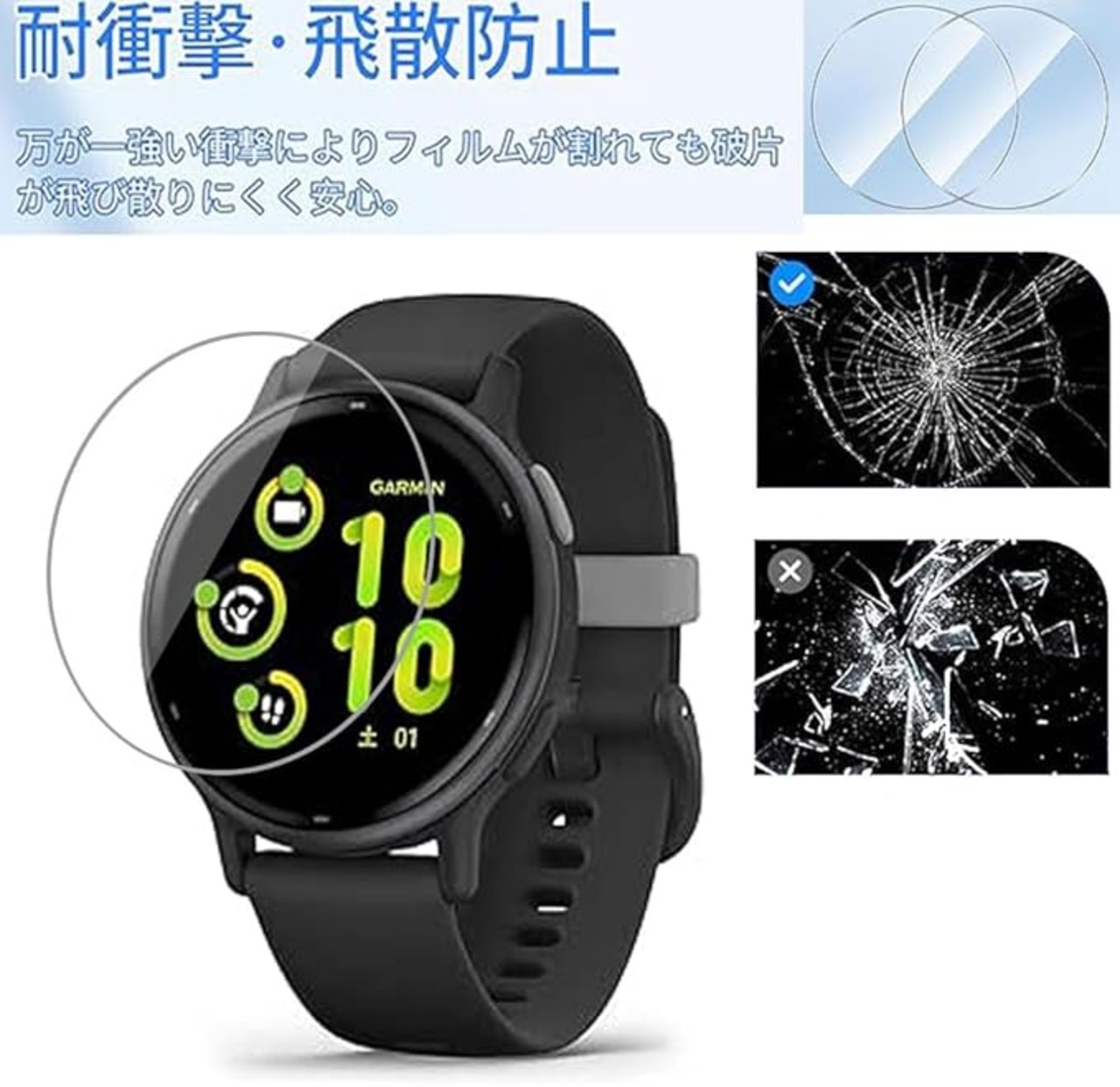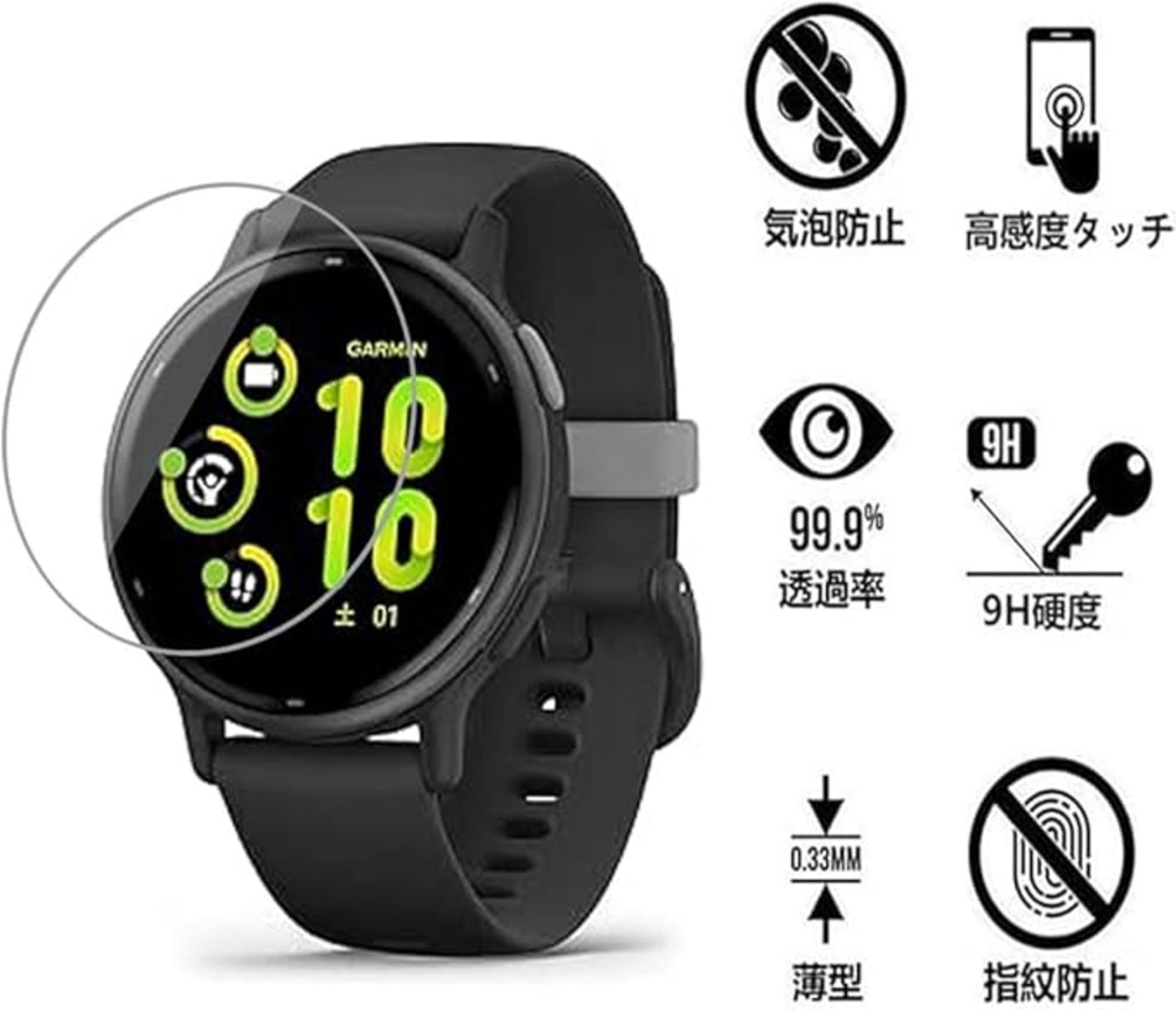 【対応機種】Garmin vivoactive 5 フィルム、2枚セット。注意: ご購入前にお使いのスマートウォッチのモデルをご確認ください。