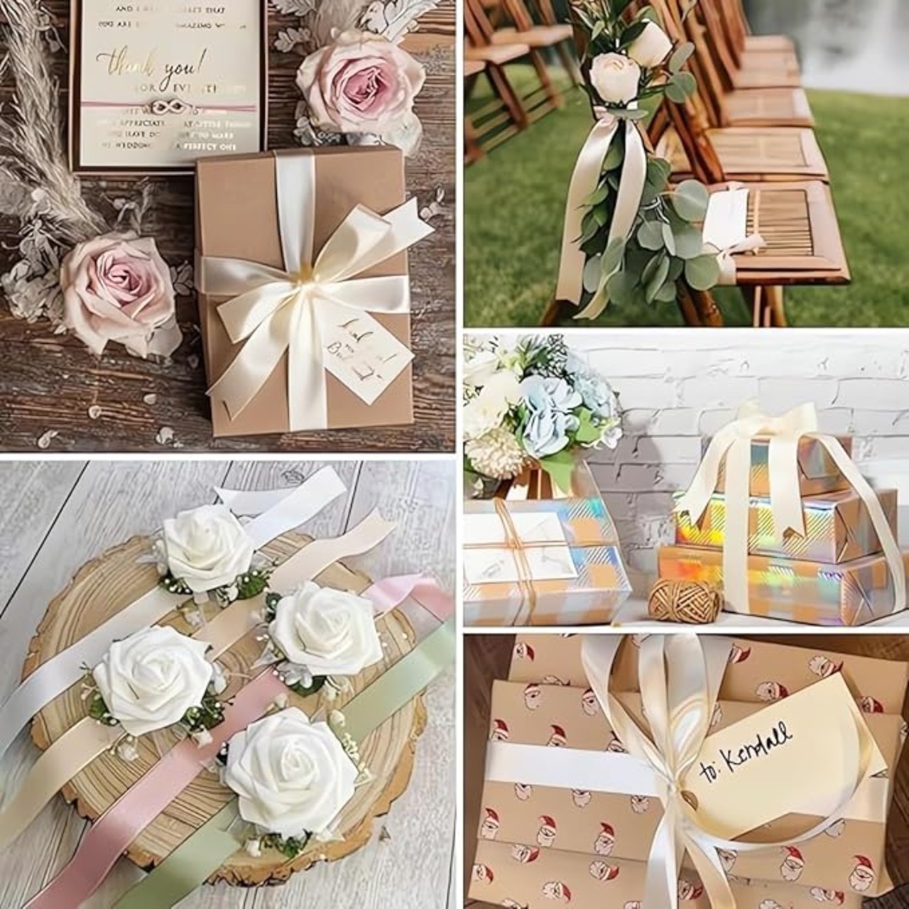 結婚のプロポーズ&記念日:リングボックスに巻き付けたり、愛と情熱を象徴するリボンやストリーマーでロマンチックな雰囲気を作り出しましょう。 ウェディングデコレーション:招待状から椅子サッシュまで、このリボンは結婚式のテーマに堂々としたタッチを加え、フラワーアレンジメント、テーブルセッティング、ギフトパッケージを引き立てます。 季節のお祝い:クリスマスやハロウィンの飾りを華やかに飾りましょう。お祝いのリボン、ガーランド、ツリーオーナメントでバレンタインデーのアクセントにも最適です。