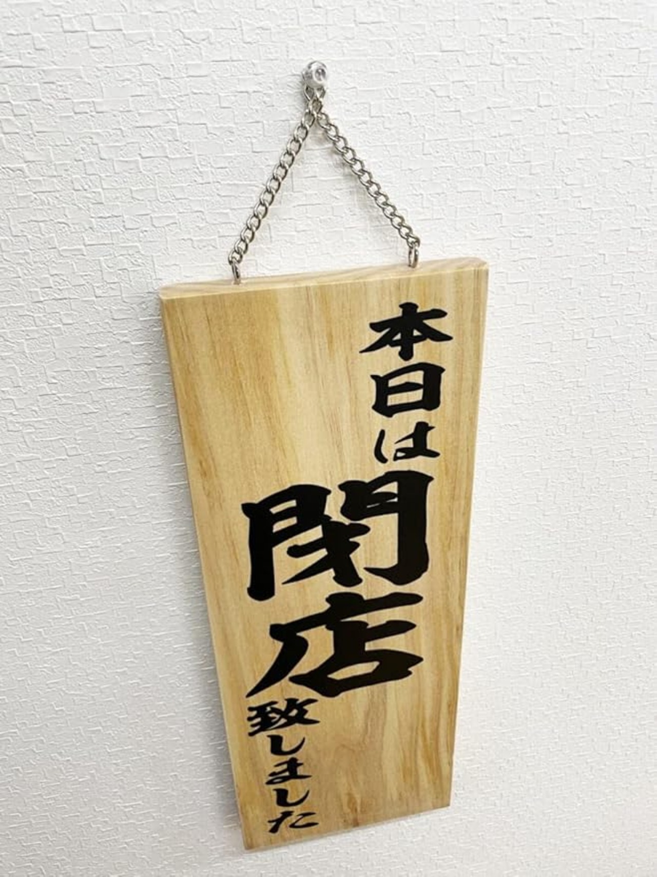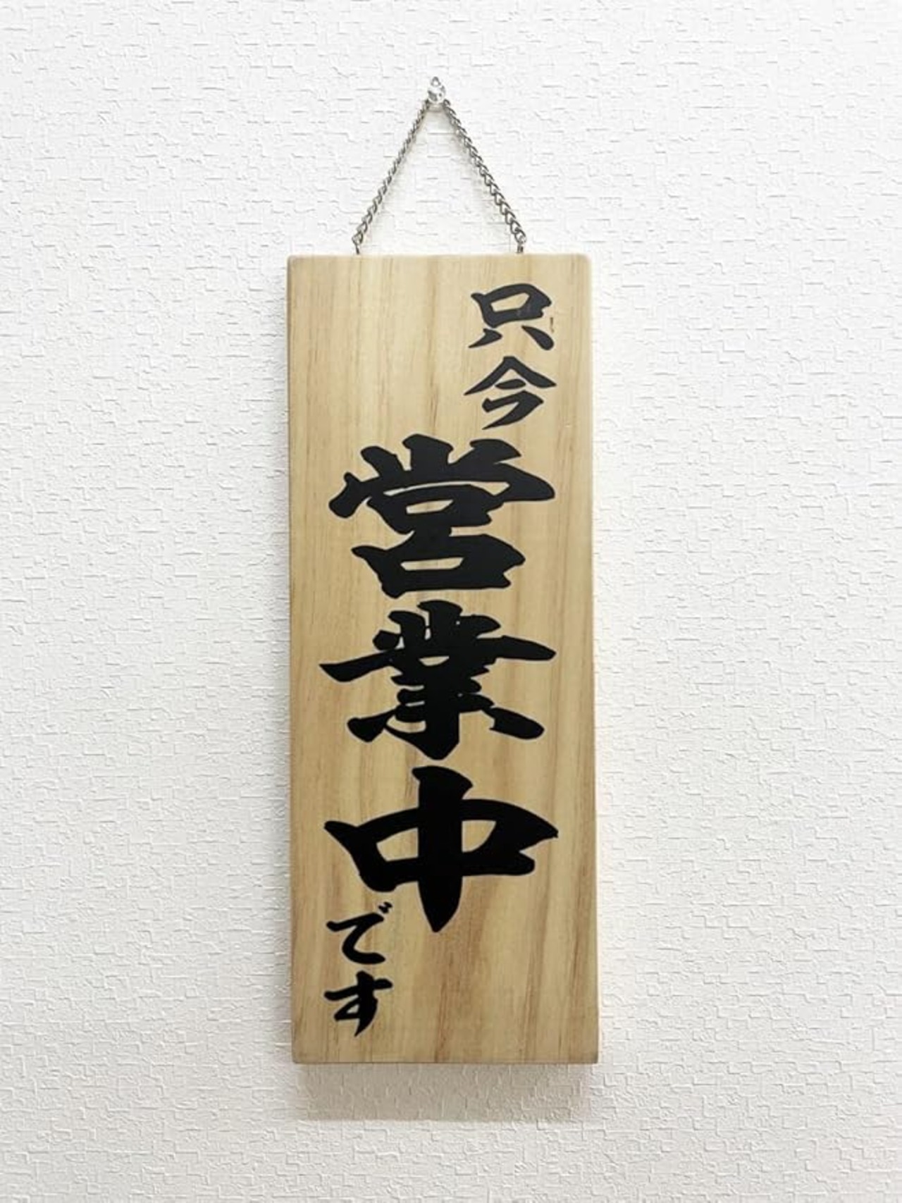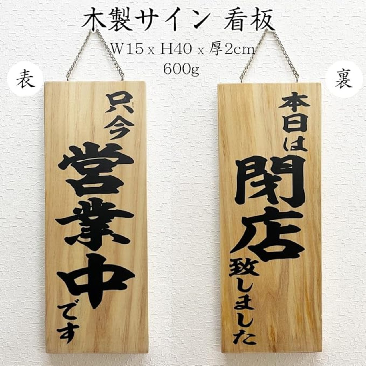 ■木製サイン 看板 (幅15x高さ40x厚2cm)くさり付cos ■両面に文字があり鎖が取り付けてある店舗用営業案内看板