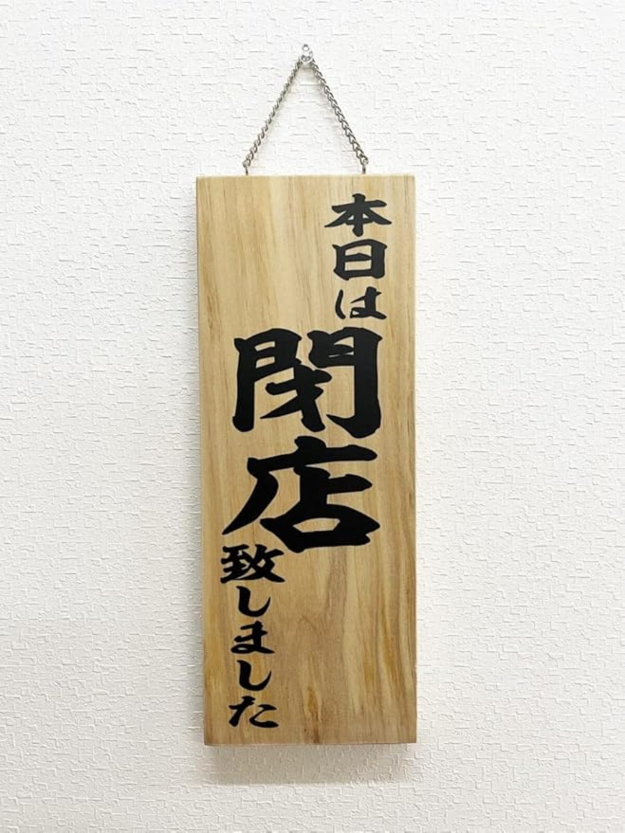 木製サイン 看板 (幅15x高さ40x厚2cm)くさり付cos (97268表 営業中-裏 閉店 木目)
