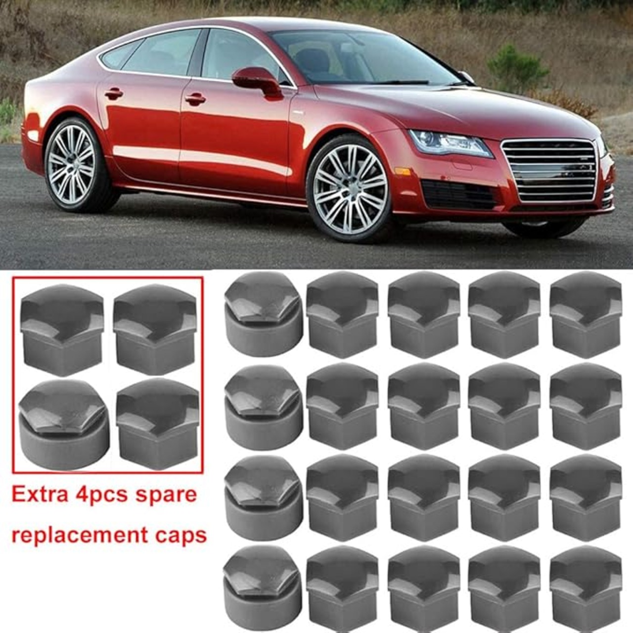 Gebildet 24pz Copridado Ruota 17mm (5pz Tappo Bullone Antifurto + 19pz Tappo Bullone Normale) Copridadi Esagonali per Pneumatici con Set di Strumenti di Rimozione per Auto (Grigio)