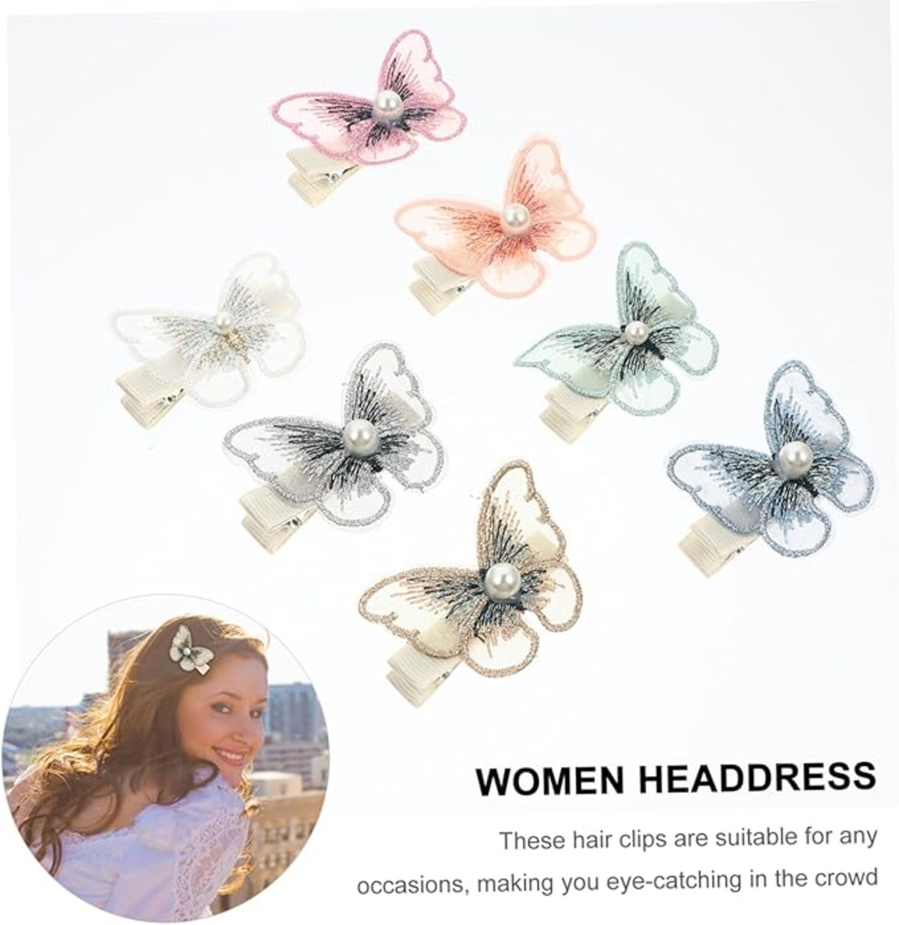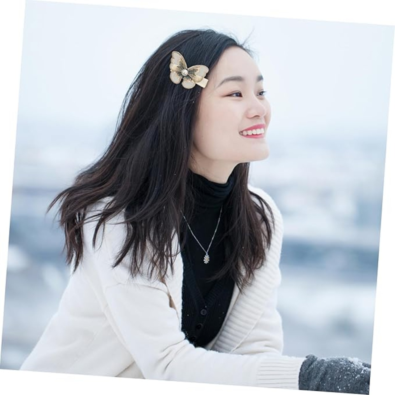 女性用ヘア爪クリップ: かわいい蝶とパールのデザインが特徴で、さまざまな服装にマッチし、より魅力的でエレガントなパールヘアアクセサリーになります。