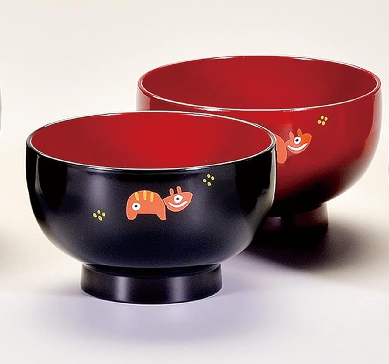 会津漆器 丸型 汁椀 赤べこ (漆・手塗)溜内朱・朱 セット