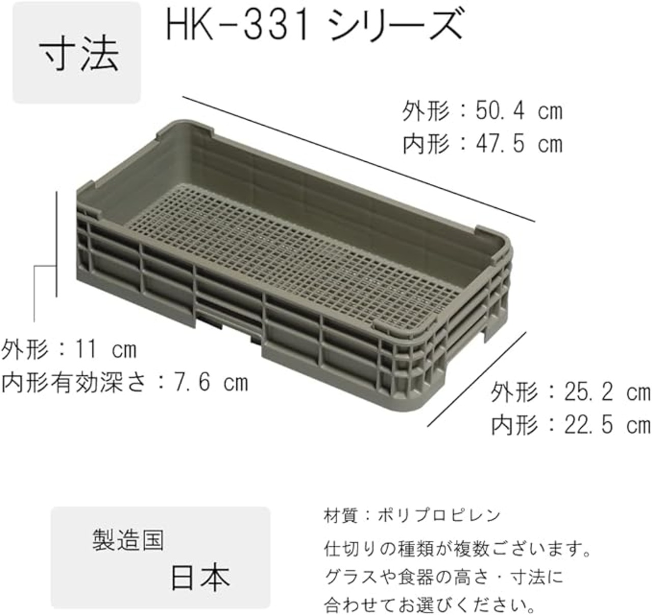石川樹脂工業 水切りラック サイクル洗浄ハーフラック グレー 8仕切 高さ76mm 1個入 ポリプロピレン 日本製 HK-331-8
