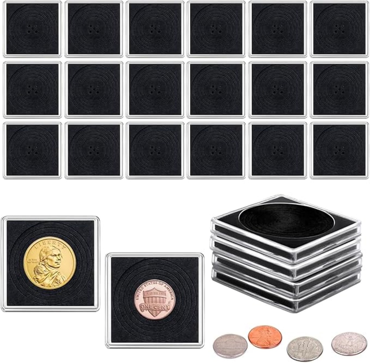新製品 コインケース 記念硬貨 ケース コインスナップホルダー 【ブラック 24個入り】 四角い コイン保管 透明性 密閉性 防湿性 ファミリーコレクション コレクションストレージ 持ち運び用 組み立てる必要がある