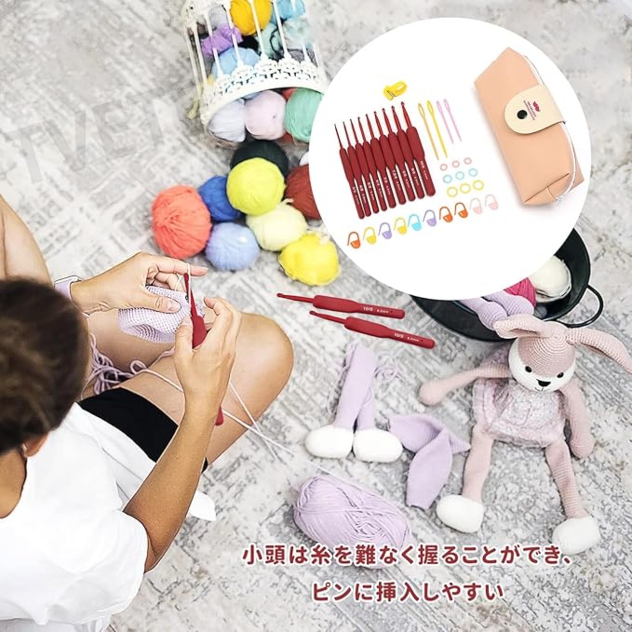 新製品 かぎ編み セット 編み物 かぎ針 かぎ針セット 【かぎ針9本】 アルミニウム プラスチック マーキングバックル マーキングサークル 糸カッター 段数マーカー 収納でき DIY 初心者 キット 編み物 手工芸 手作り セット 赤