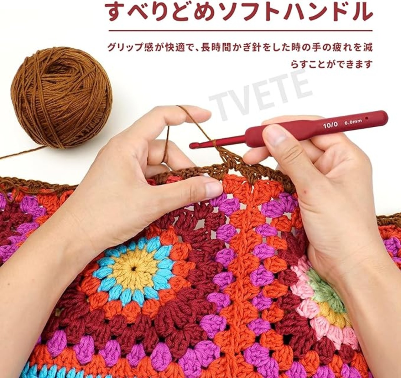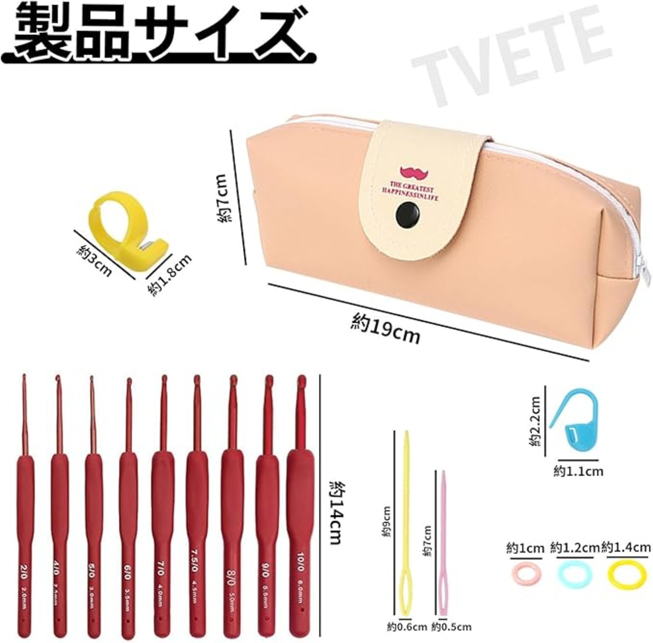 【商品内容】:かぎ針セットには、2.0mm~6.0mmの赤いハンドルのかぎ針9本、マーキングバックル10個、マーキングサークル9個、糸カッター1個、2サイズの縫合針4本、携帯用バッグ1個が含まれています。商品は全部で9種類、合計34点あります。フックは滑らかでバリのない表面と快適なグリップを備えており、手の疲労を軽減します。