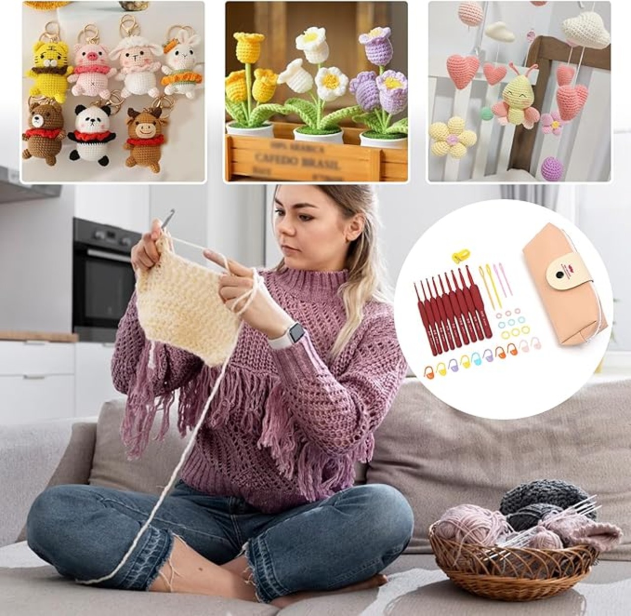 【編みを始めましょう! 】: 編み物かぎ針キットには、さまざまな編み物作成のニーズを満たすために、高品質のかぎ針とさまざまな補助ツールが組み合わされています。初心者でも、経験豊富な手工芸の専門家でも、簡単に始めて自分だけのユニークな作品を編むことができます。自分だけの温もりと美しさを編み出して、人生の芸術を咲かせましょう。