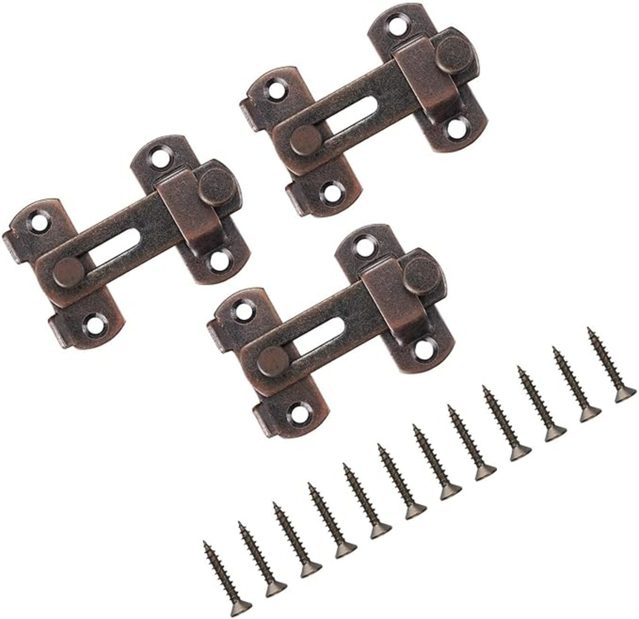 ドアロック 3個セット 銅色 レトロスタイル ステンレス製 180度留め金タイプ 引き出し 鍵 止め金具 とびらロック バーラッチ高硬度