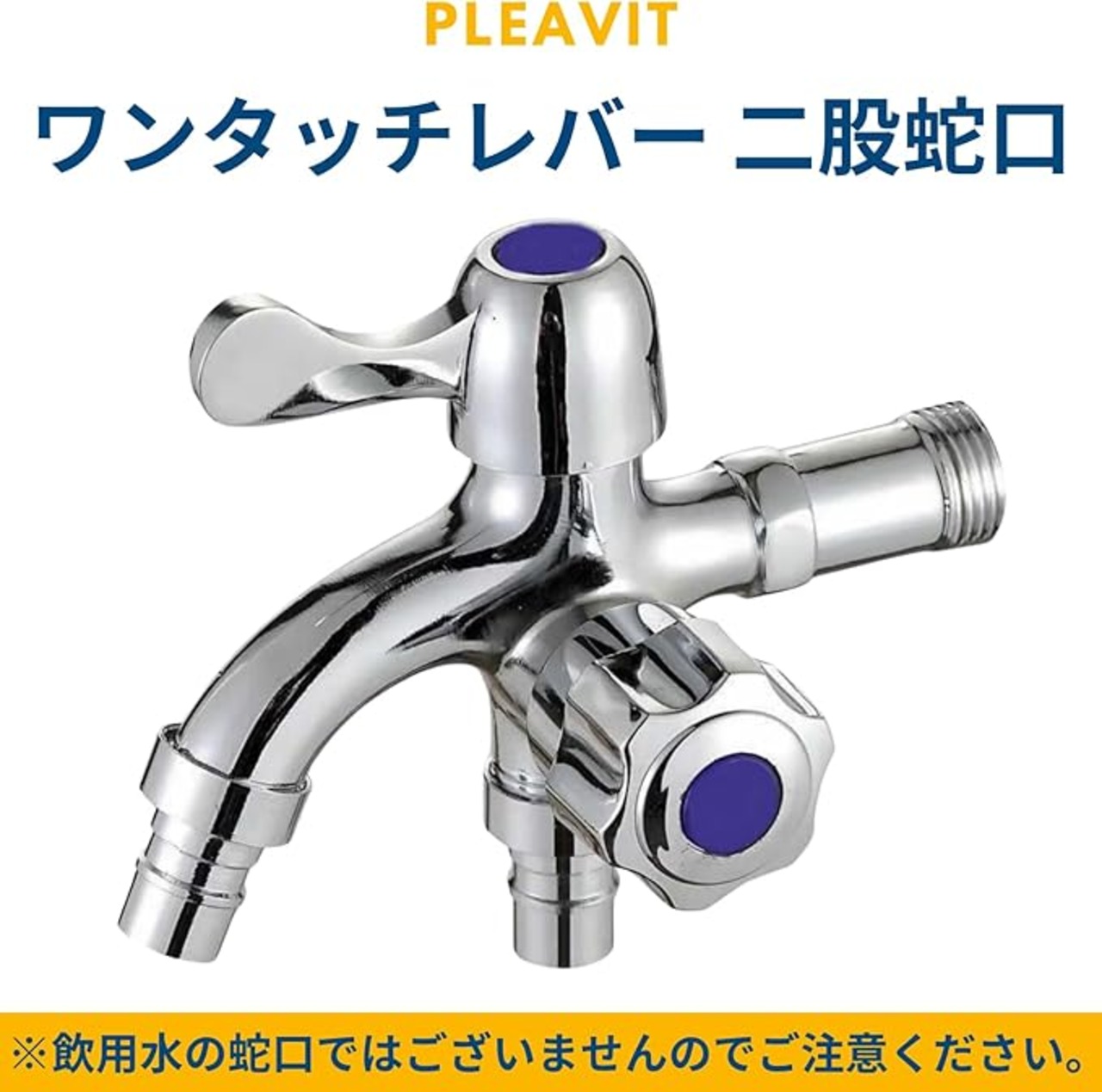 PLEAVIT 水道 蛇口 分岐 二股 二口 双口 ワンタッチ 洗濯機 水栓 屋外 切り替え 継手 (青)
