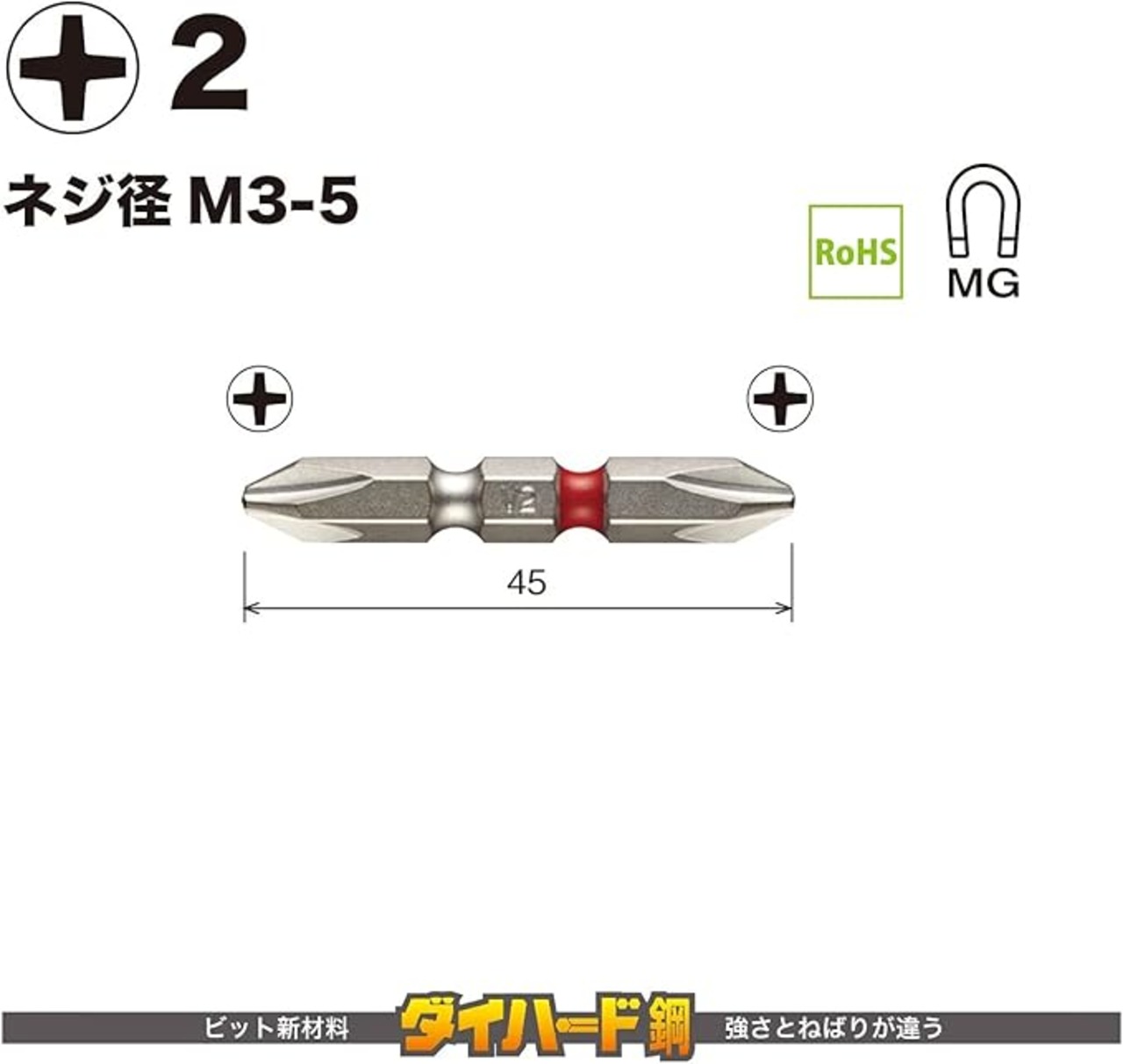 ベッセル(VESSEL) 40V対応 両頭プラス 剛彩ビット +2 45 1本組 GS142045