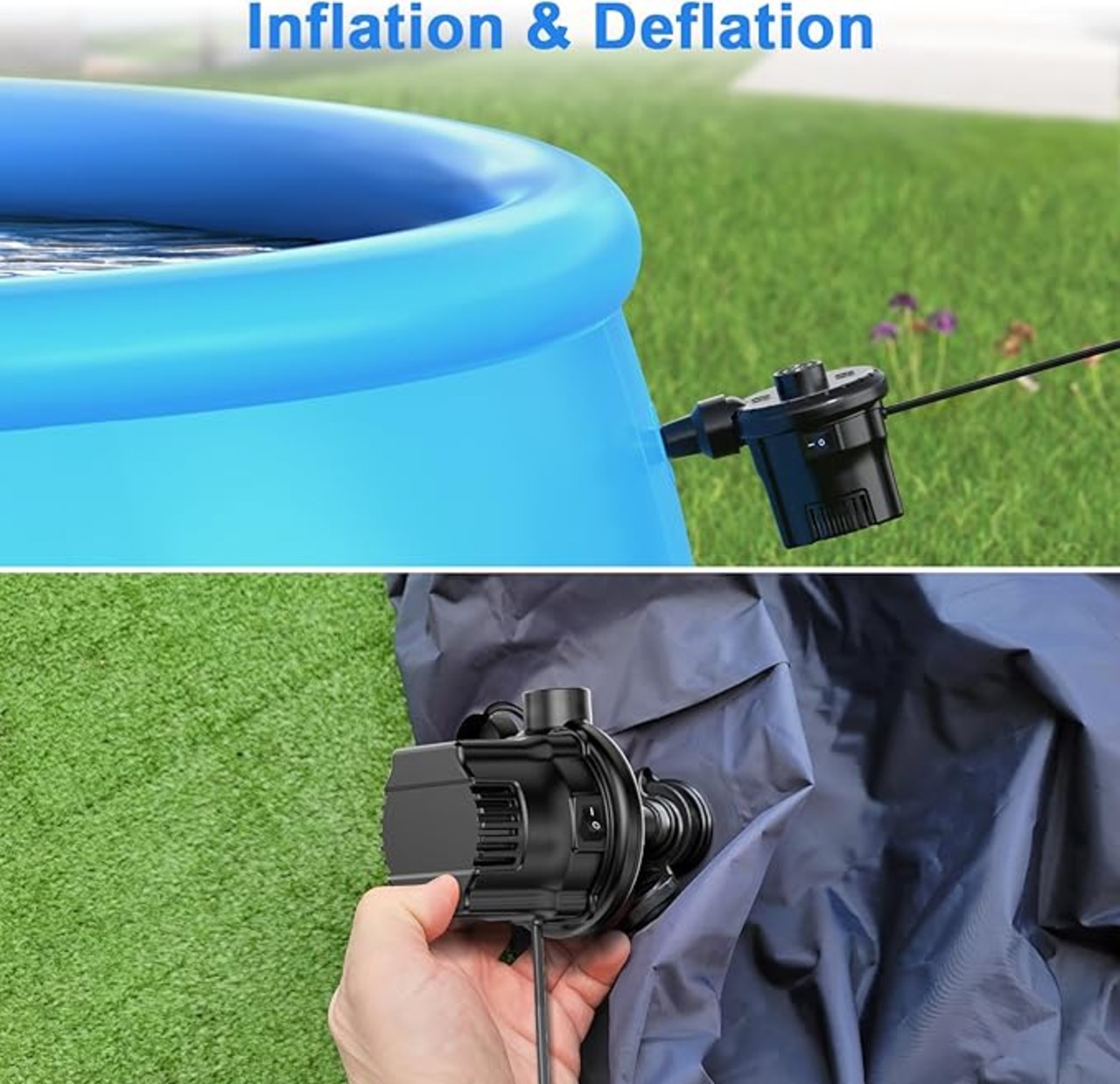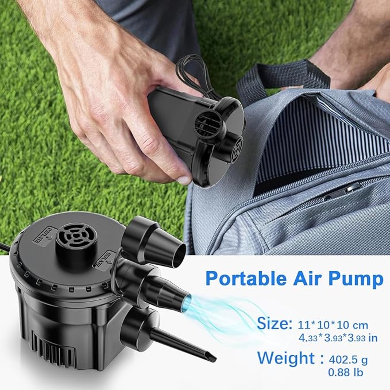 Electric Air Pump for Inflatables, Portable Air Mattress Pump, AC 110V-120V Quick-Fill Inflator/Deflator Air Pump for Pool Floats, Blow Up Inflatable Pool Raft, Air Bed, Snow Tube, Camping
