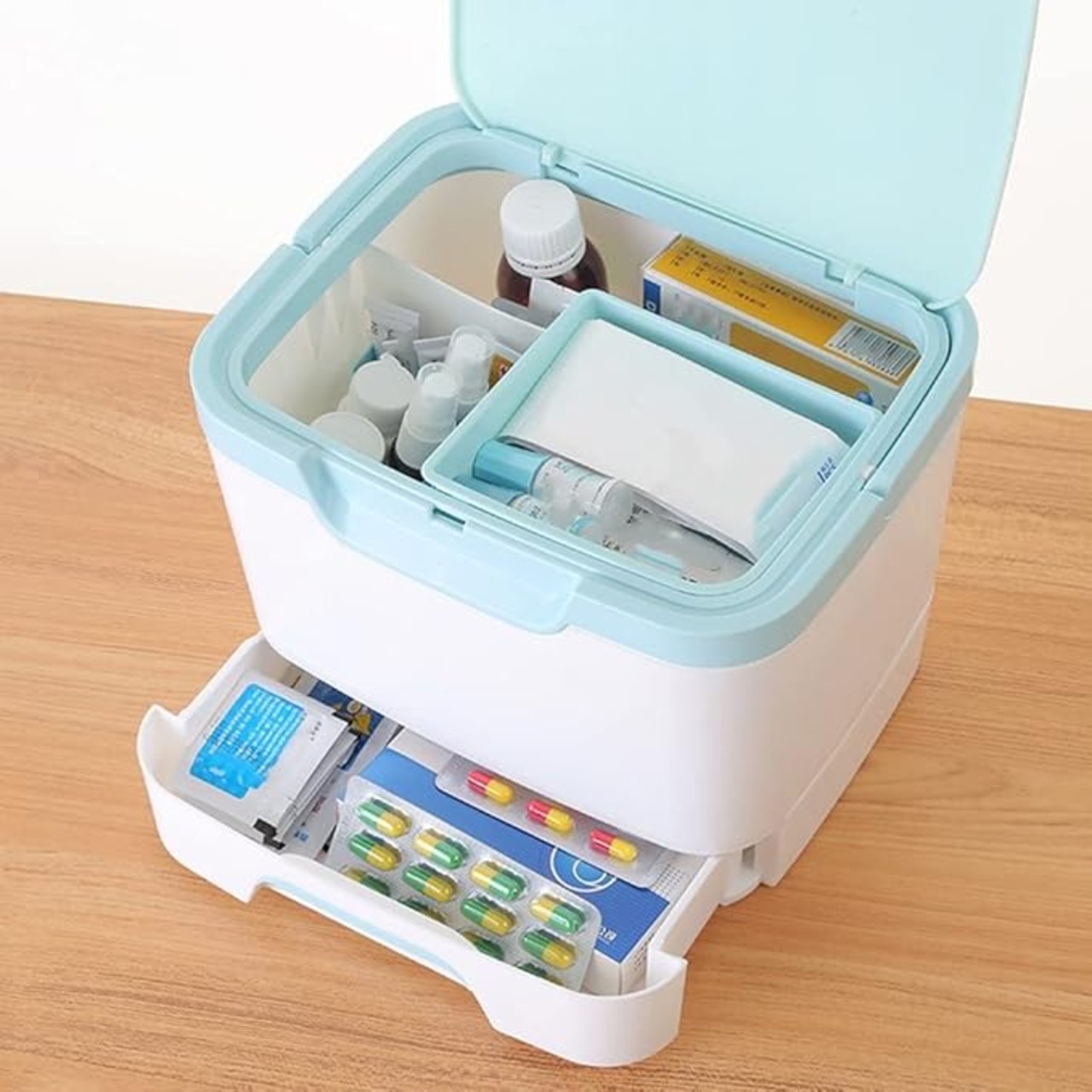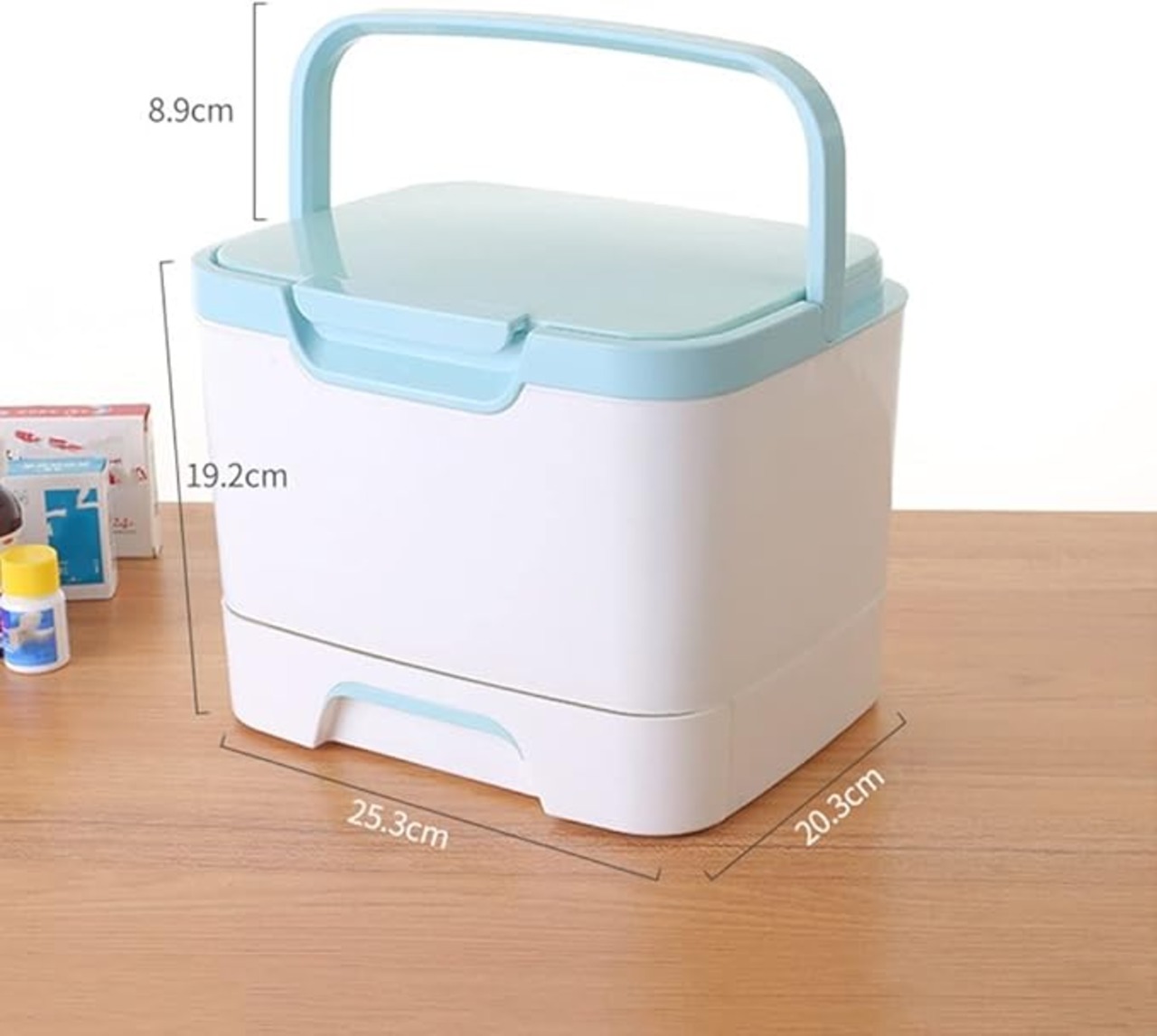 救急箱 収納ボックス 薬箱 引き出し付き家庭用多層大容量ポータブル薬箱 大容量 多機能収納 家庭用 (Color : Blue, サイズ : 25.3x20.3x19.2cm)