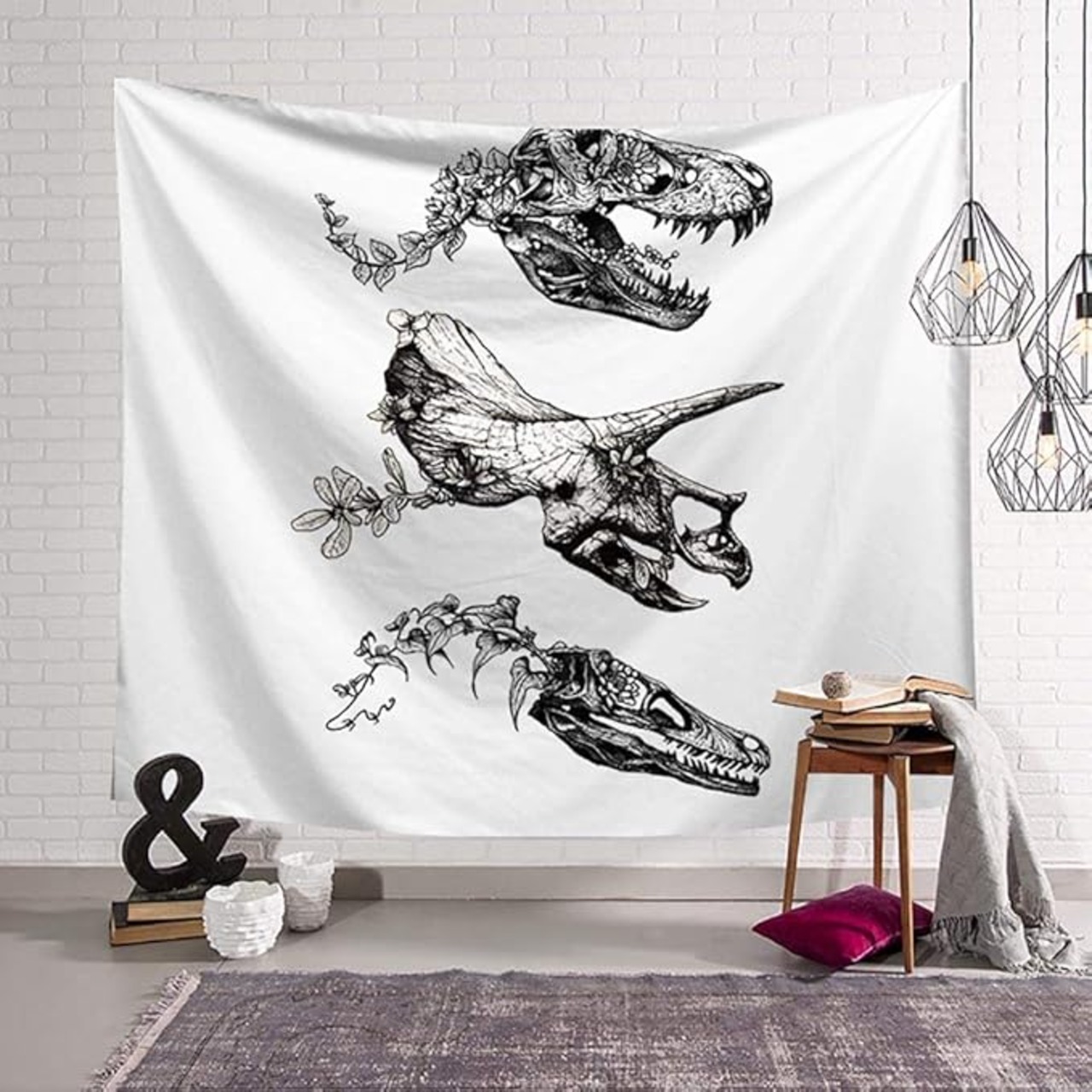 Boyouthタペストリー壁掛け、ティラノサウルス、トリケラトプス、ラプター恐竜化石パターンデジタル印刷壁タペストリー、59.1"x51.2"(150*130cm)