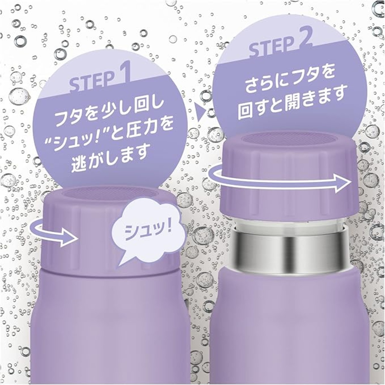 炭酸飲料に対応したスクリュータイプのボトル。フタを少し回すと、"シュッ"と圧力が抜けフタが開けやすい。