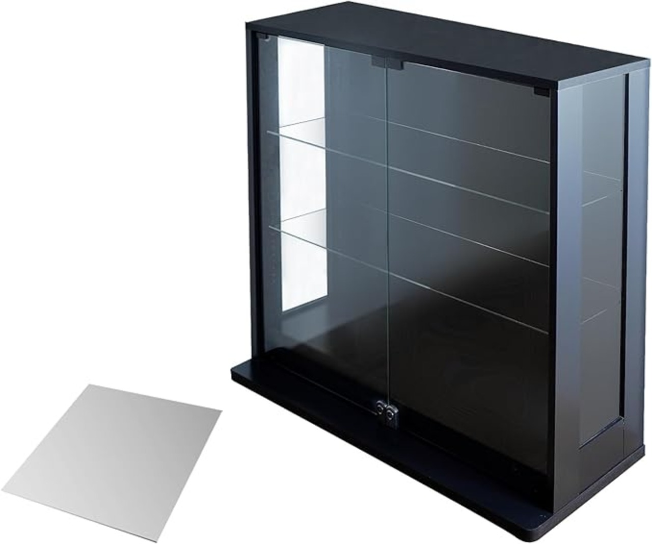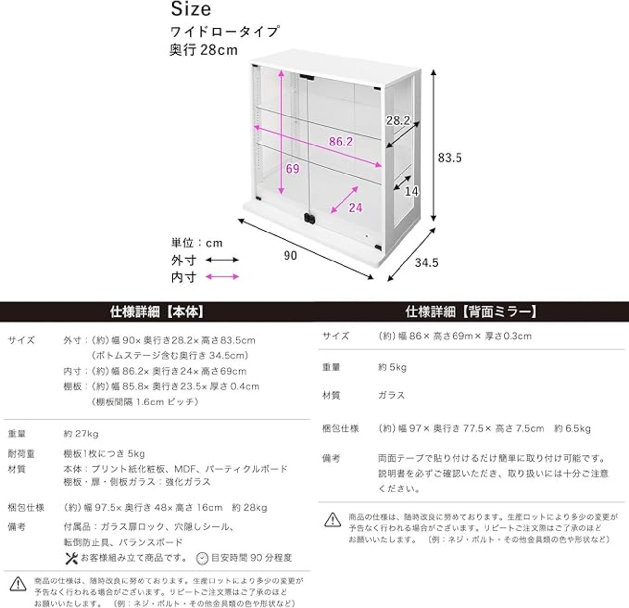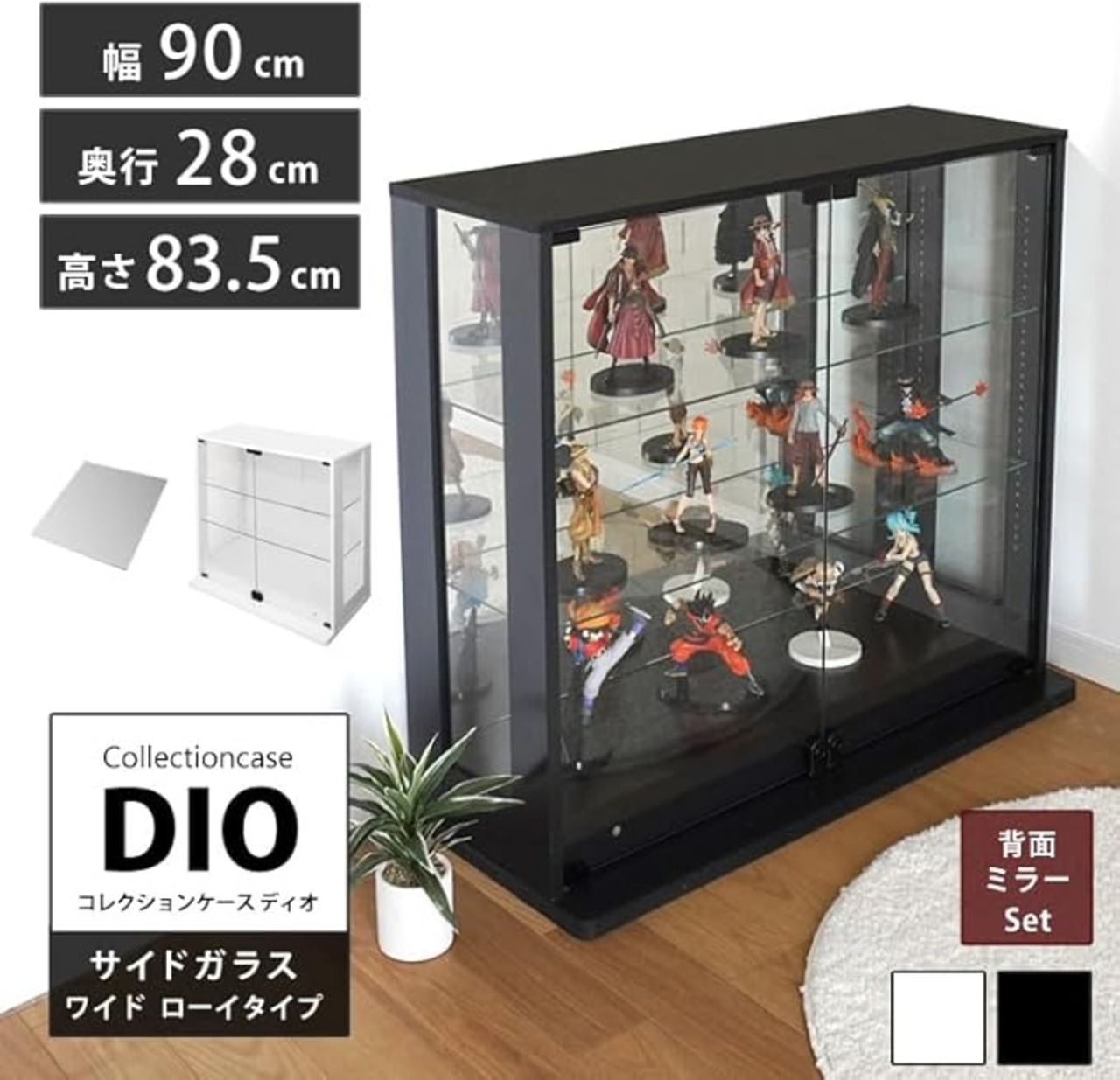 地球家具 コレクションラック DIO 本体 側面ガラス 幅90cm ワイド ロータイプ 奥行28cm ブラック コレクションケース ガラスケース ディスプレイケース フィギュアラック フィギュア ケース (本体 + 背面ミラー セット) (幅90cm ワイド, ロー, 奥行28cmタイプ) ※LEDは別売