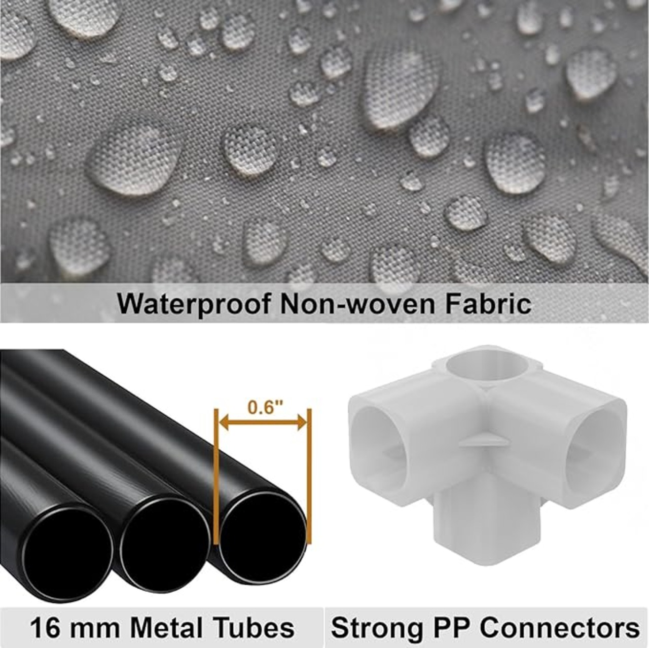 直径0.65インチの鉄管と強化されたPP素材のコネクタで構成され、耐荷重能力が大幅に向上します。 このワードローブは、衣類の重さに耐えられるほど丈夫で耐久性があります。