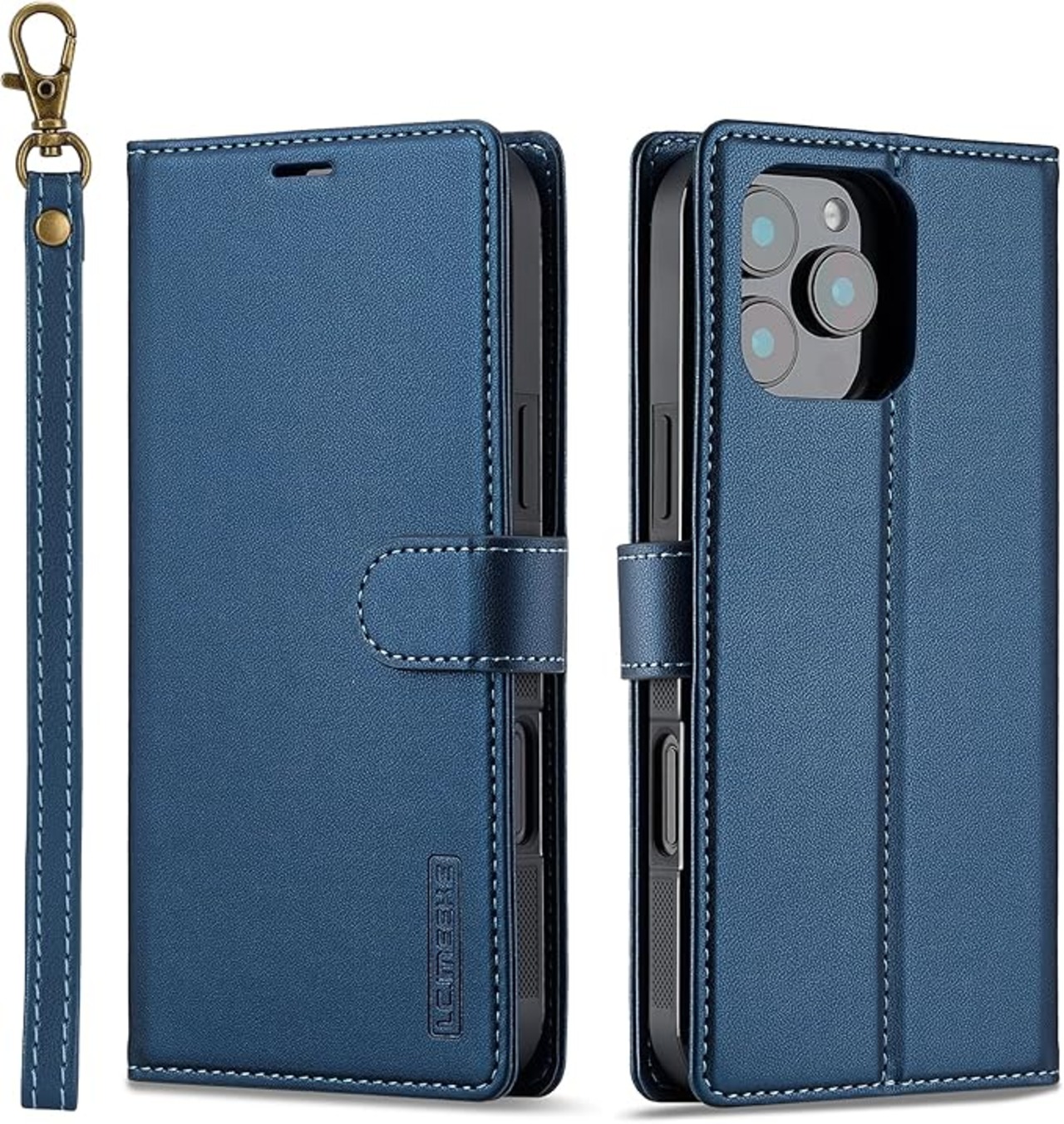 スマートフォンのフリップケース 取り外し可能なケース、iPhone 16 Pro対応、カードホルダー付きウォレットケース、プレミアムPUレザーマグネットケース、キックスタンド付き、耐衝撃リストストラップ、取り外し可能なフリップ保護カバー ..フリップケース(Blue)