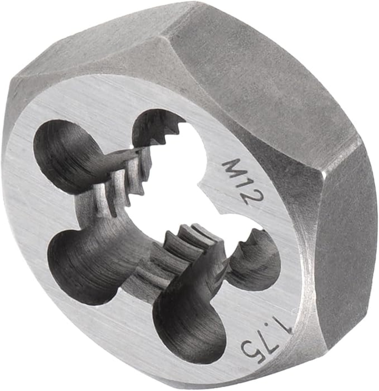 六角再切削ダイス M12 x 1.75ピッチ 5つのチップ穴付きの炭素鋼円筒パイプスレッディングツール -(用途:スレッド修理に適用)