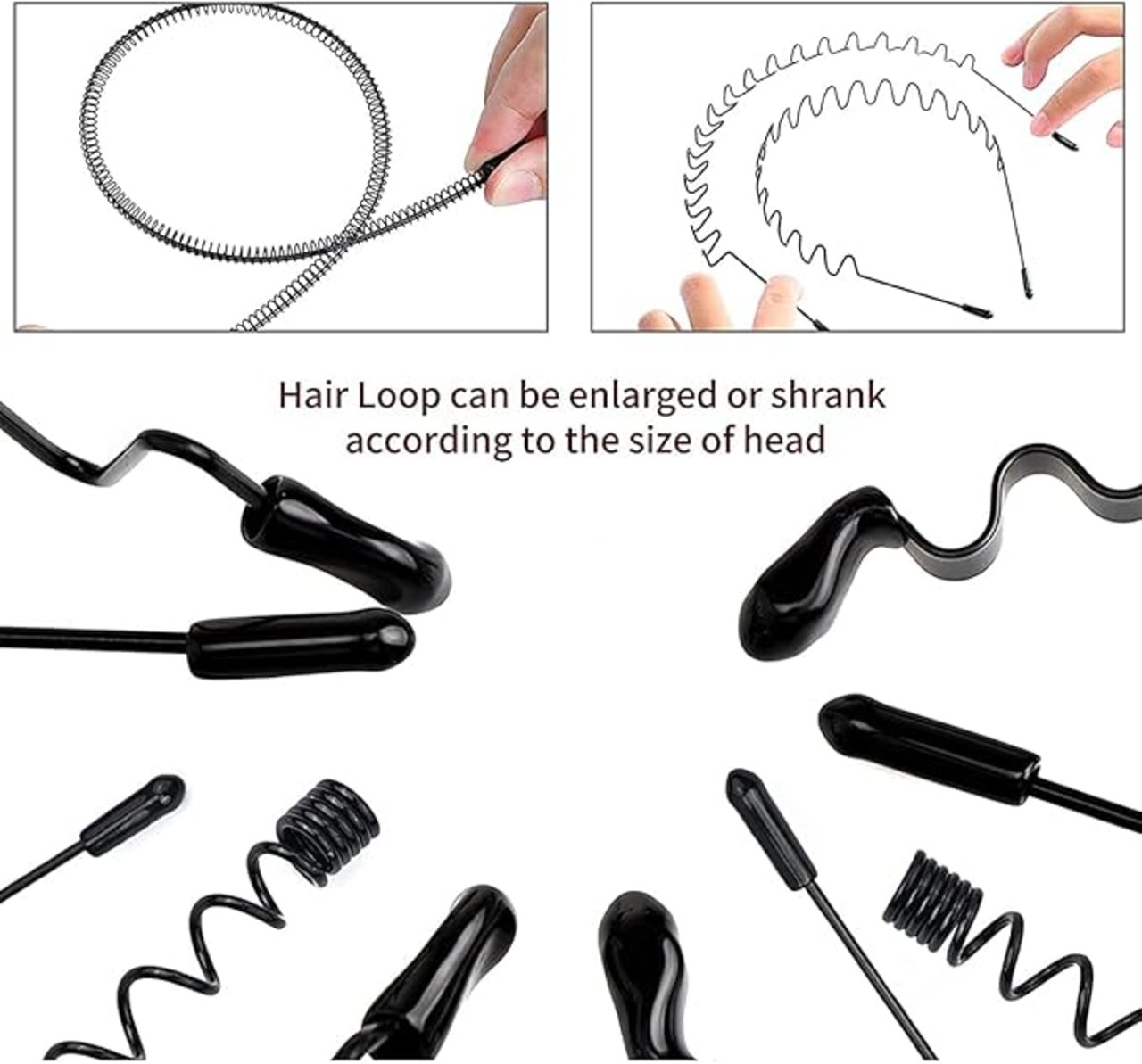 カチューシャ ヘアバンド メンズ レディース 男女兼用 波型 髪留め ヘアアクセサリー シンプル 黒 6本セット