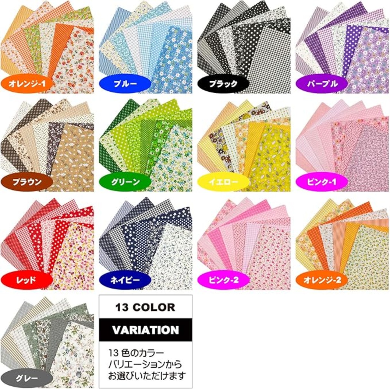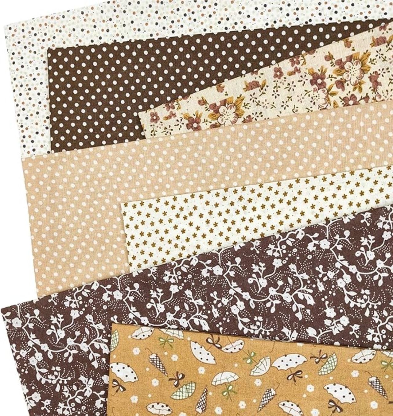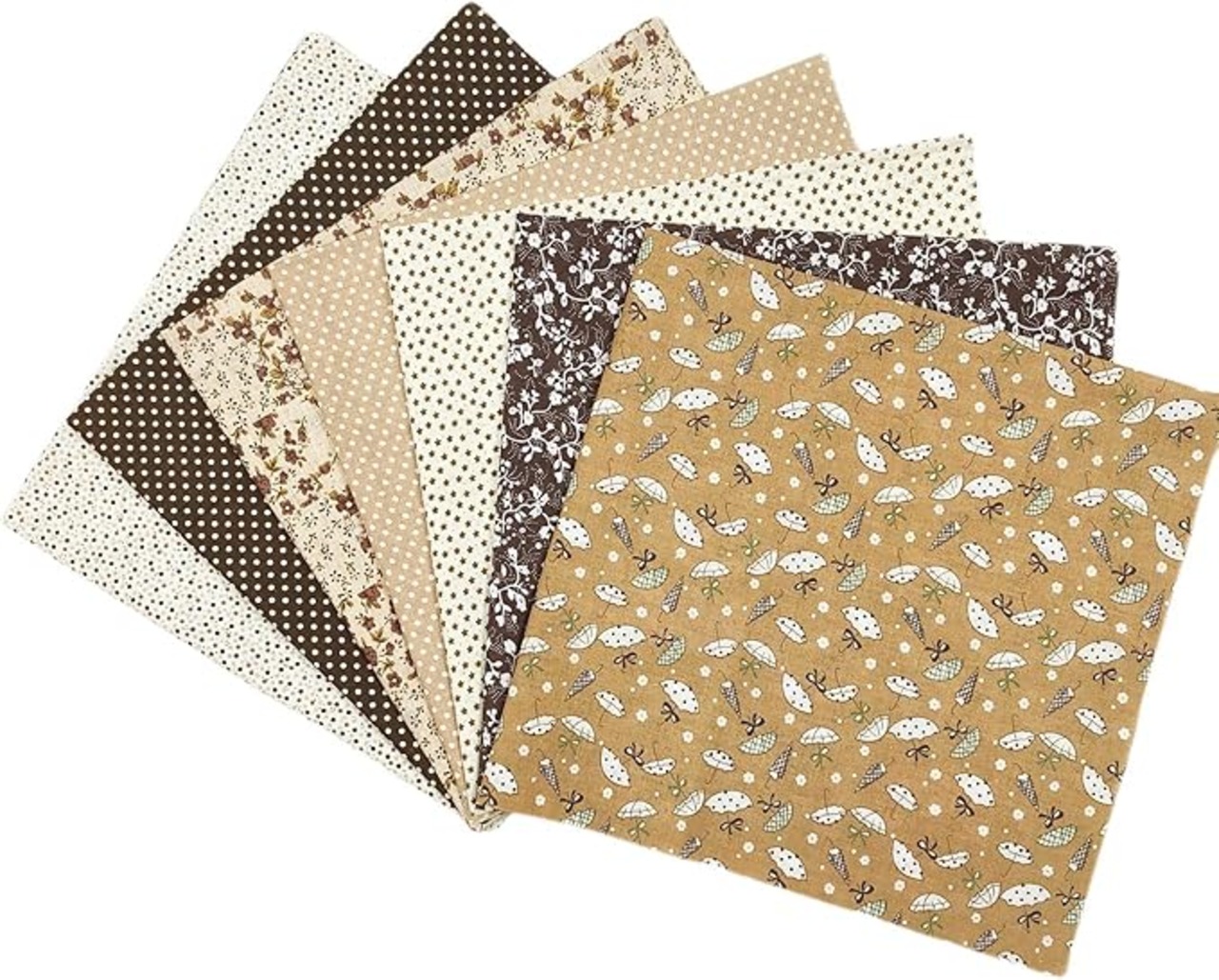 カットクロス 布 花柄 プリント 生地 ハギレ 手芸 パッチワーク 50cm 50cm 7枚セットB (ブラウン)