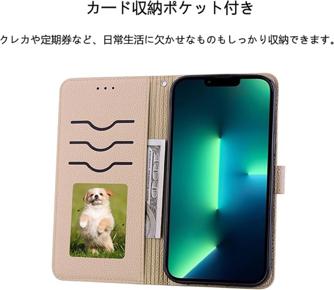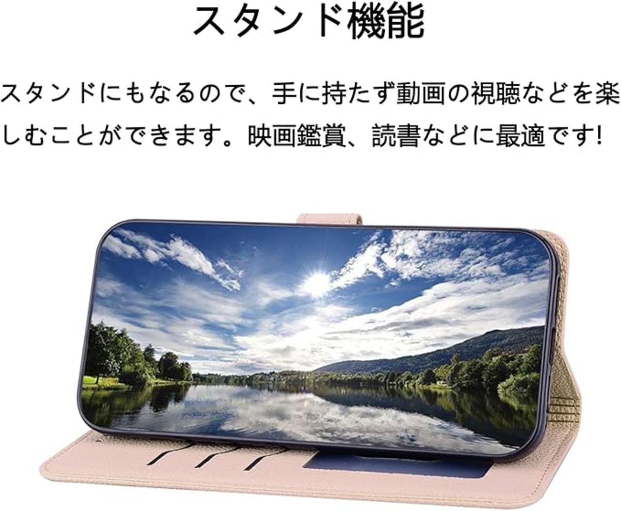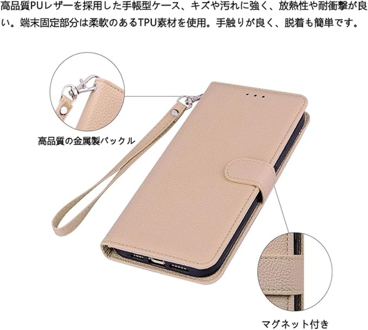 【素材】高品質なPUレザーを採用した手帳型 ケース、キズや汚れに強く、放熱性や耐衝撃が良い。端末固定部分は柔軟のあるTPU素材を使用。手触りが良く、脱着も簡単です。