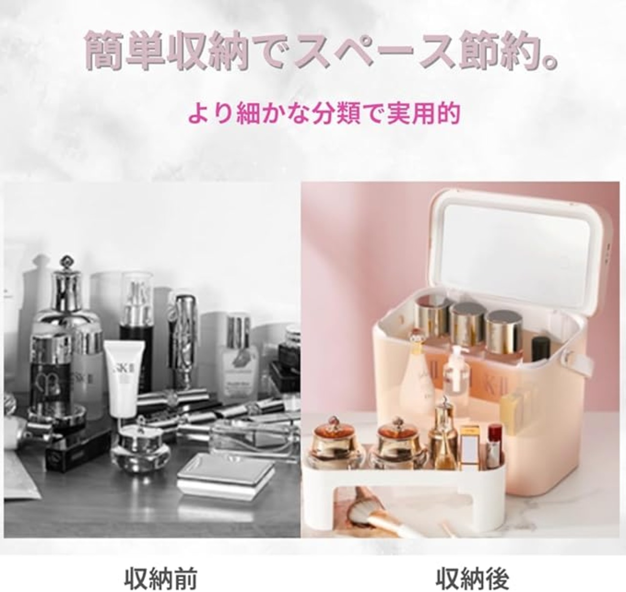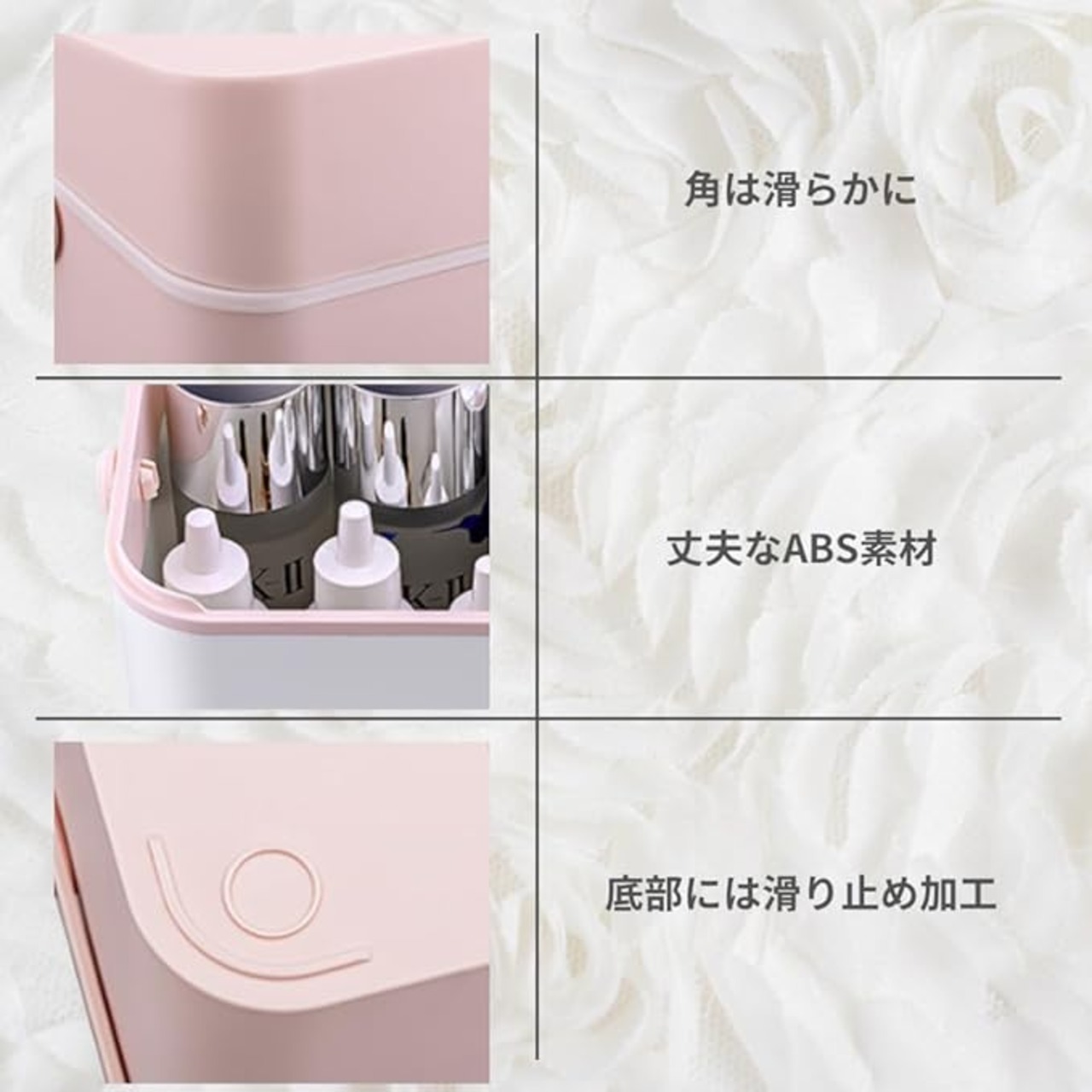 メイクボックス 鏡付き コスメボックス 大容量 持ち運び 化粧品収納 プロ仕様 大きめ かわいい (ピンク)