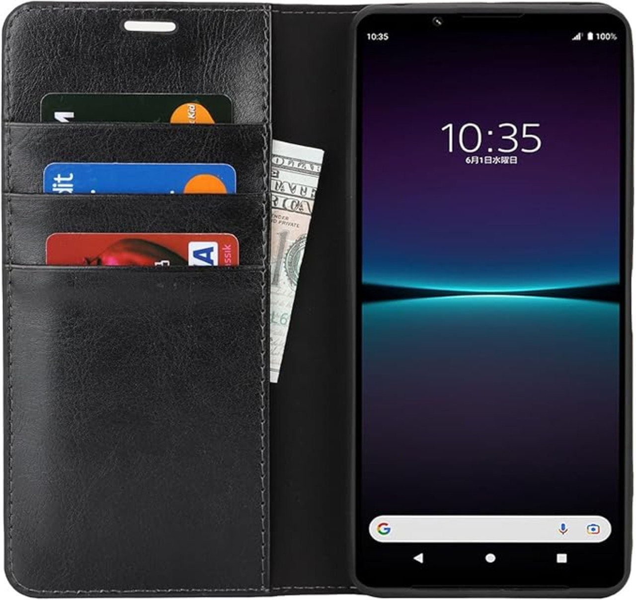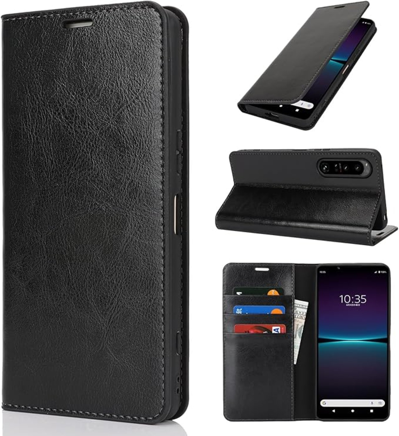 for Xperia 1 VI ケース エクスペリア1 vi SO-51E SOG13 XQ-EC44 手帳型 ケース for Sony SO51E XQEC44 Case カバー 財布型 携帯カバー 収納ポケット 牛革製品 ポケット収納付き 横置きスタンド機能 4色 ブラック