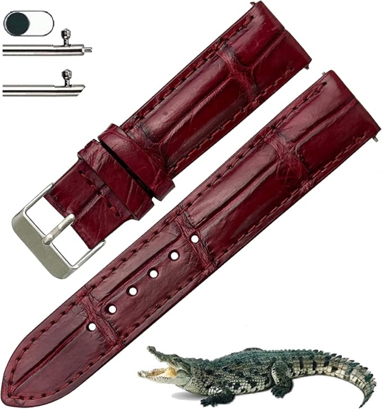 20mm ボルドー ワニ腕時計ベルト クロコダイル クイックリリースネ棒 皮革交換時計バンド メンズ 高級 クラシック 光沢 ヴィンテージ 替え腕時計 バンド 腕首バックル付き 男性 DH-70-20MM
