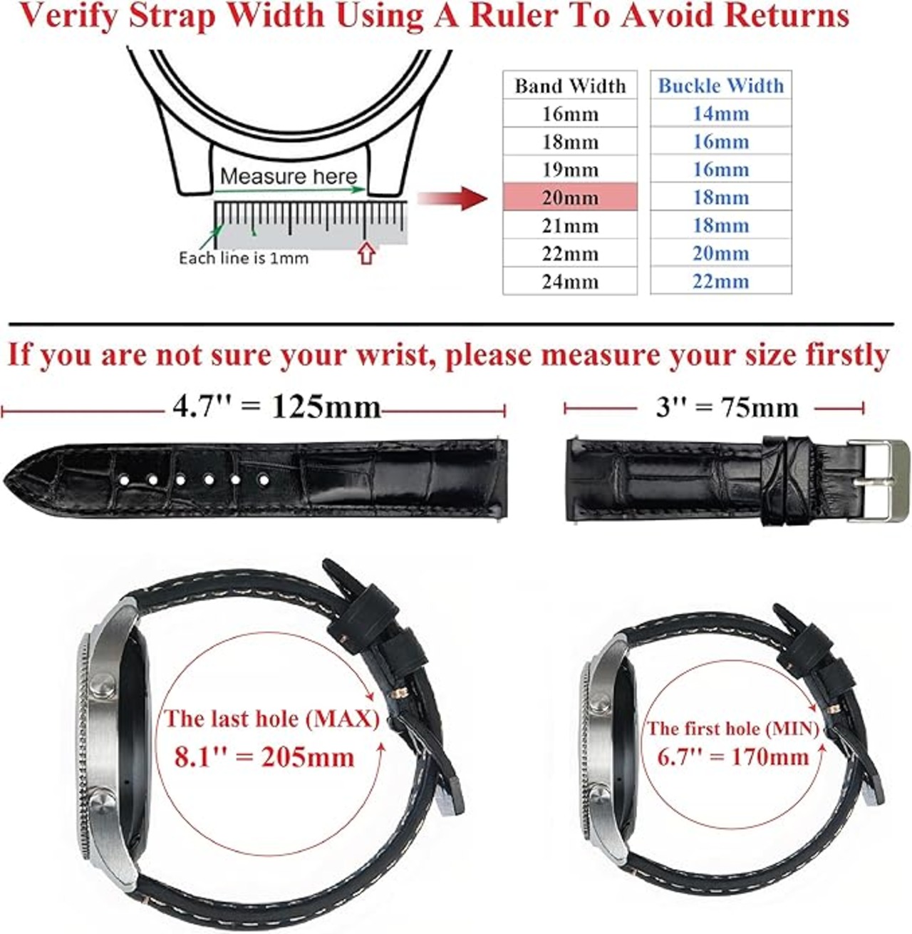 ラグ幅: 20mm、尾錠幅: 18mm。