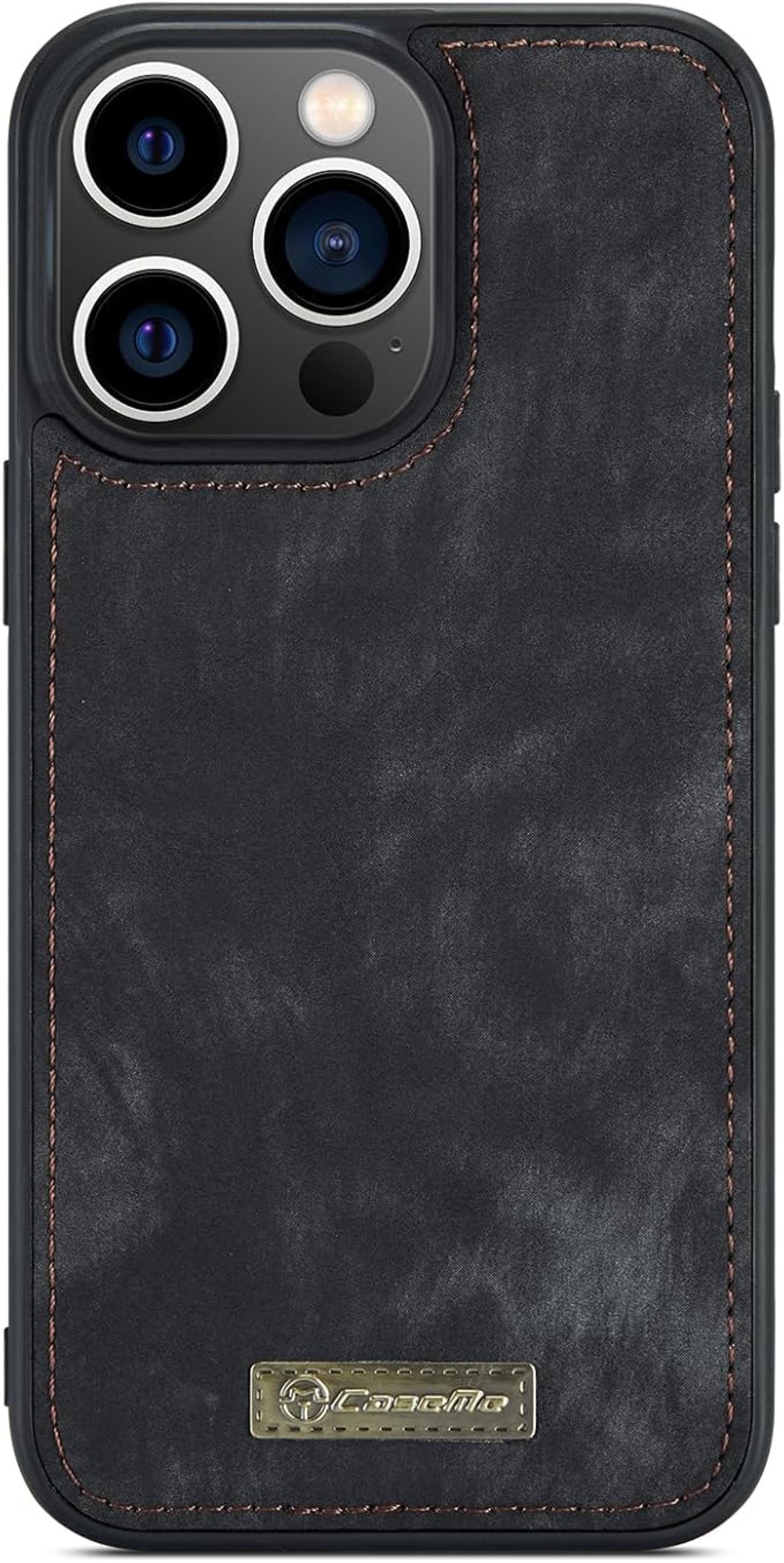 For 2023発売モデルiPhone 15Pro Max分離式ケース ストラップ付きビジネス風PUレザーワイヤレス充電と車載 マグネット取り外し自由大容量収納(小銭やイヤホン、コインな)財布合一ケース【MYH】アイフォン15プロマックスお洒落 人気男性ファスナー設計/おつり/コインスマホケース(ブラック)