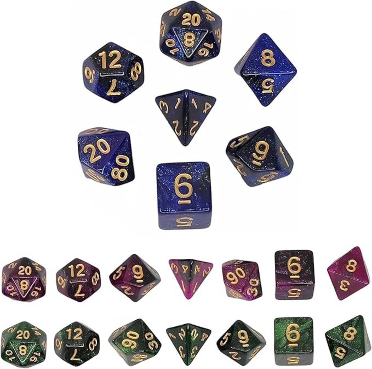 かっこいい配色:ギャラクシーカラーダイス21個セット、紫+青+赤の3組 7個ダイスセットです,ほとんどの人に合う多彩な色。