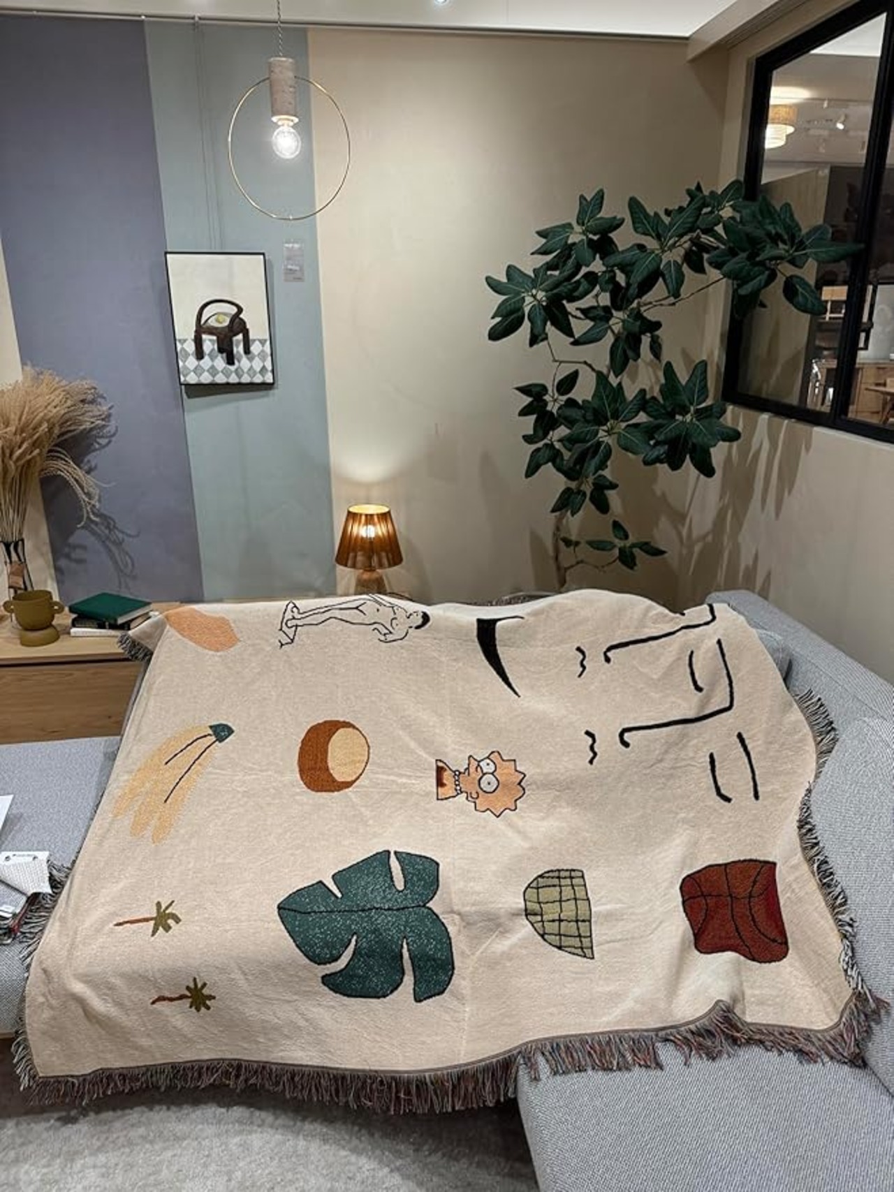 Peel Forest 面白い 柄 おしゃれ ブランケット シンプソンズ ラグ 北欧,ひざ掛け,ベージュ (130X160cm)