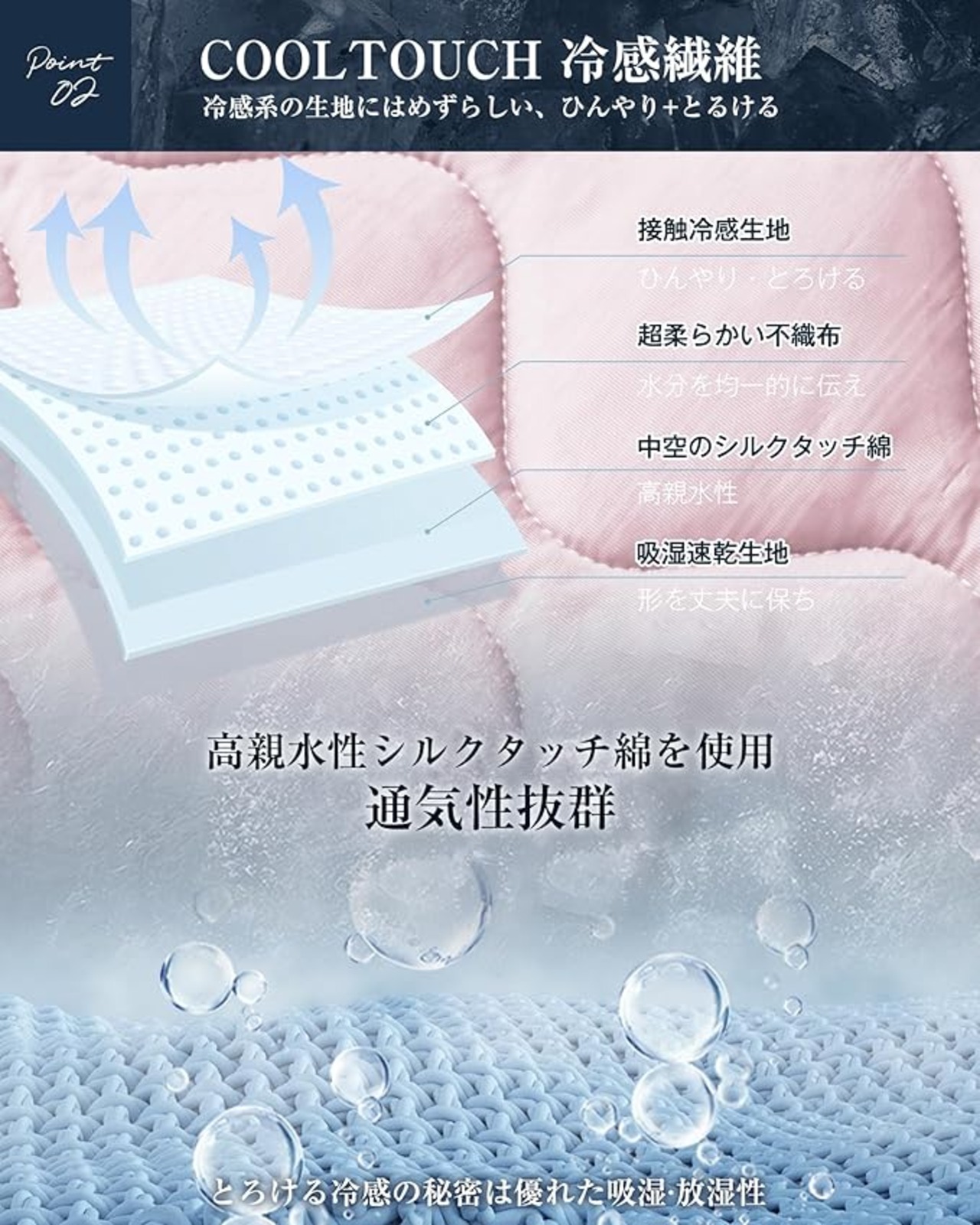 特徴 キルティング, 冷却, 抗菌, 洗える