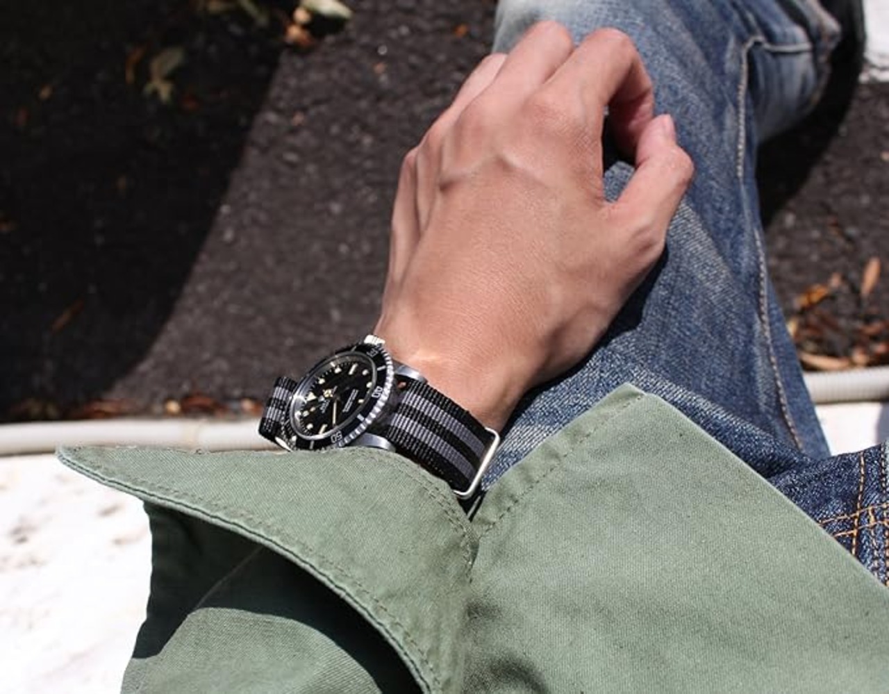 【永久バックル】NATOストラップのオリジナル・スペックに忠実な、バネ棒を使用しない尾錠を採用。