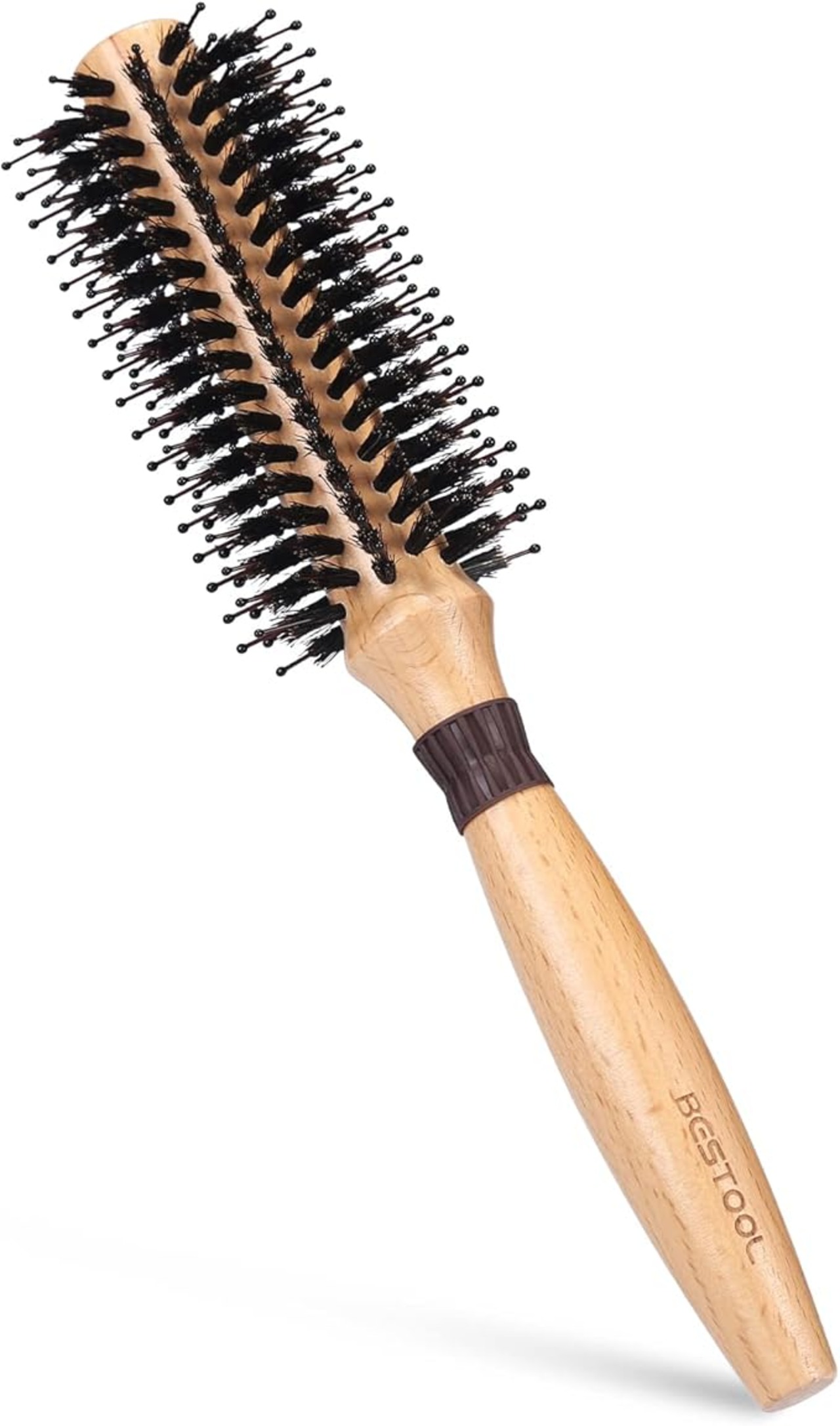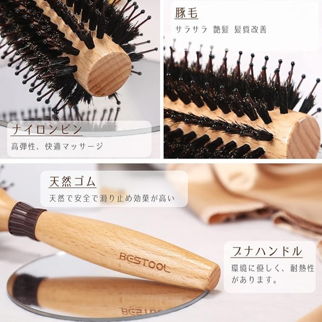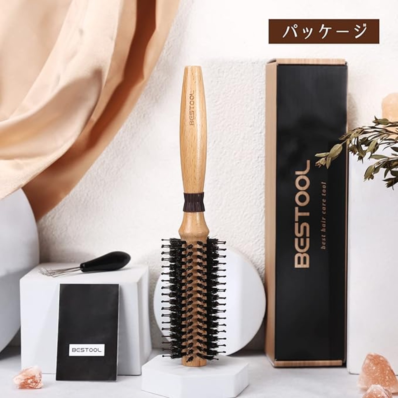 BESTOOL 豚毛 ロールブラシ カールブラシ ブローブラシ ヘアブラシ くし 木製 櫛 ヘアケア レディース メンズ 巻き髪 耐熱 人気 艶髪 (S)