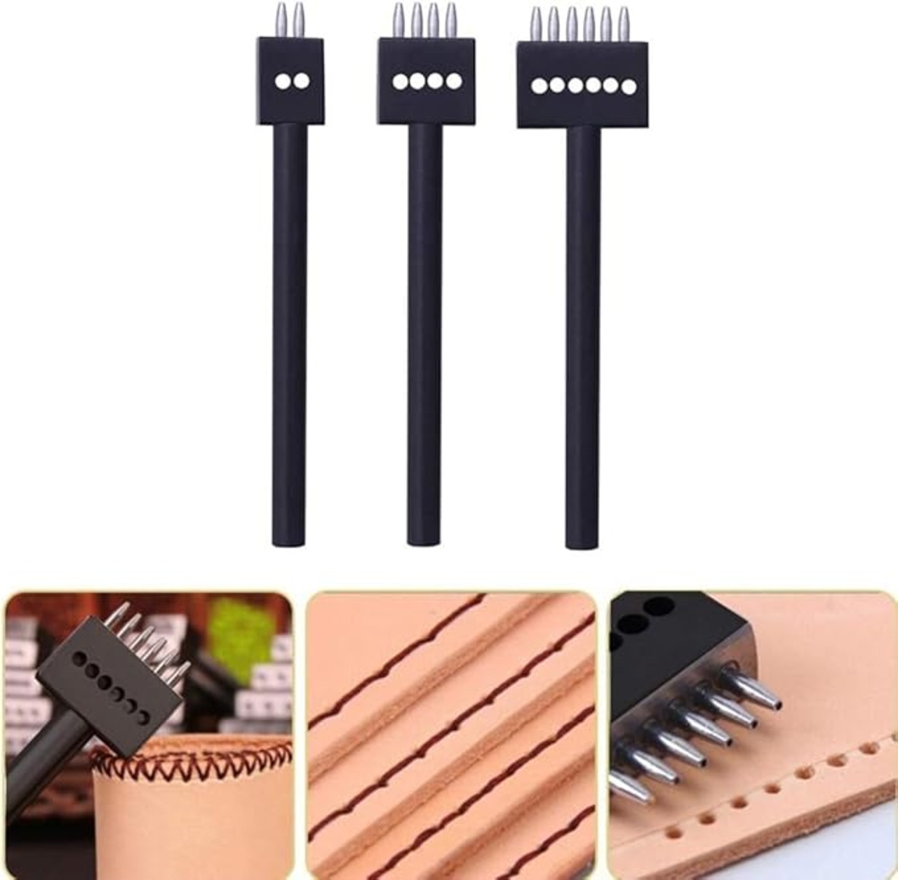 レザークラフト 皮革製品作成工具の円形丸穴、穴あけポンチセット。歯の間隔は約5mmで、2本歯 4本歯 6本歯をご用意しております。