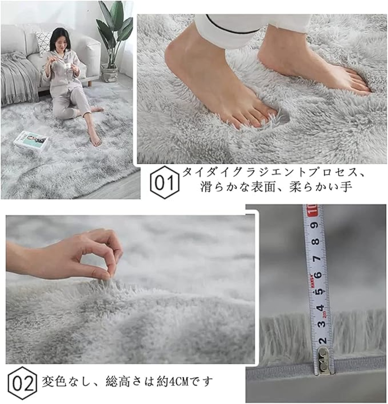 Kinganda カーペット ラグ ふわふわ 北欧 ラグマット 約2畳 シャギー 滑り止め付 抗菌 防音 防ダニ 防カビ 折り畳み 柔らか 長方形 冷房 床暖房対応 オールシーズン (160x200cm, ライトグレー)